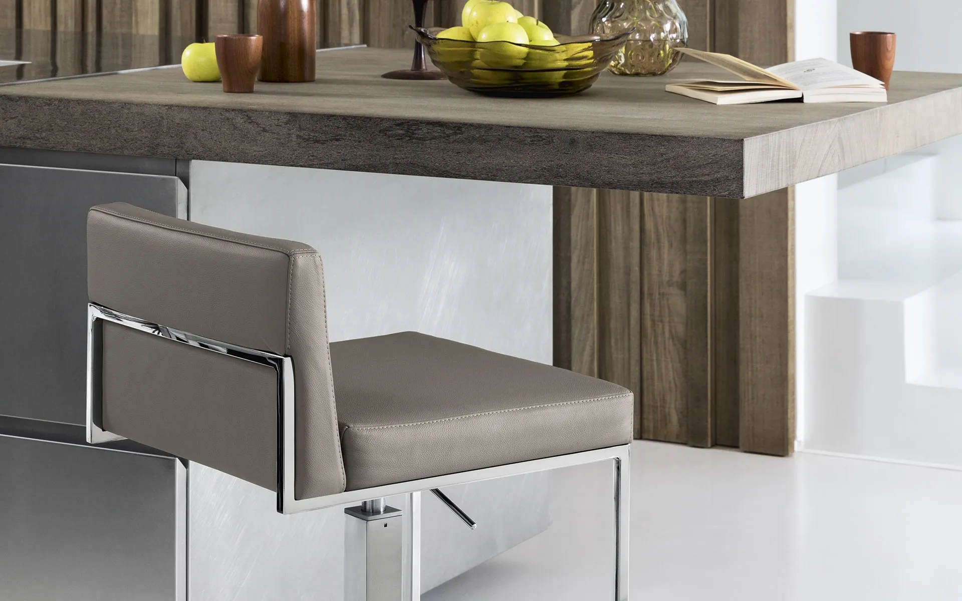 In the living room or kitchen, chairs are indispensable furnishings: they define the style of the environment and serve an essential role. If you desire a leather chair to enrich your home environment, learn more about the model in the photograph and find a matching table. The living room and kitchen are not truly welcoming and comfortable if furnished with the wrong chairs, which is why they need to be matched with the rest of the furniture and the dimensions of the room. A wide range of kitchen stools awaits you in the store: contact us for information and quotes and optimize your interiors with the excellence that only Calligaris can guarantee for furniture and accessories. Even Plus adjustable swivel stool by Calligaris: this model will enhance spaces of all kinds, particularly modern settings.