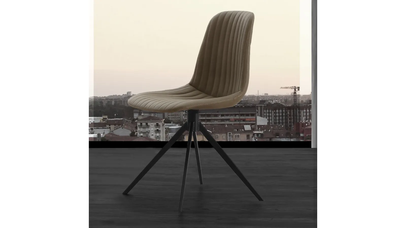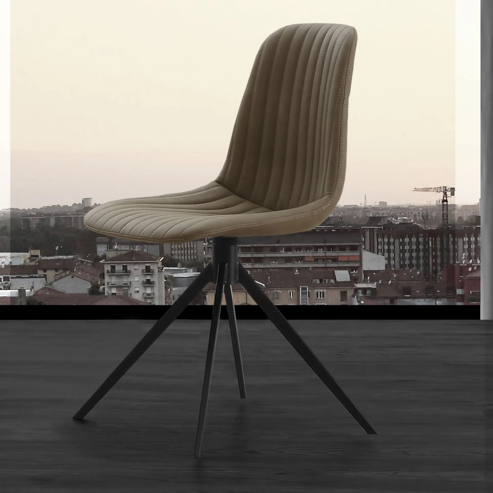 La sedia Cinquecento si distingue per il suo design raffinato e la sua solida costruzione. Realizzata con una struttura in metallo verniciato nero, assicura stabilità e resistenza. Sedile e schienale sono finemente imbottiti e rivestiti in ecopelle effetto nabuk, un materiale che offre una piacevole sensazione tattile e un'elevata durabilità, disponibile nelle tonalità neutre del beige e del grigio. La sua configurazione fissa, non girevole, ne esalta la stabilità. Progettata per durare, questa sedia offre un connubio ideale di stile e funzionalità, garantendo un'esperienza d'uso prolungata e affidabile.