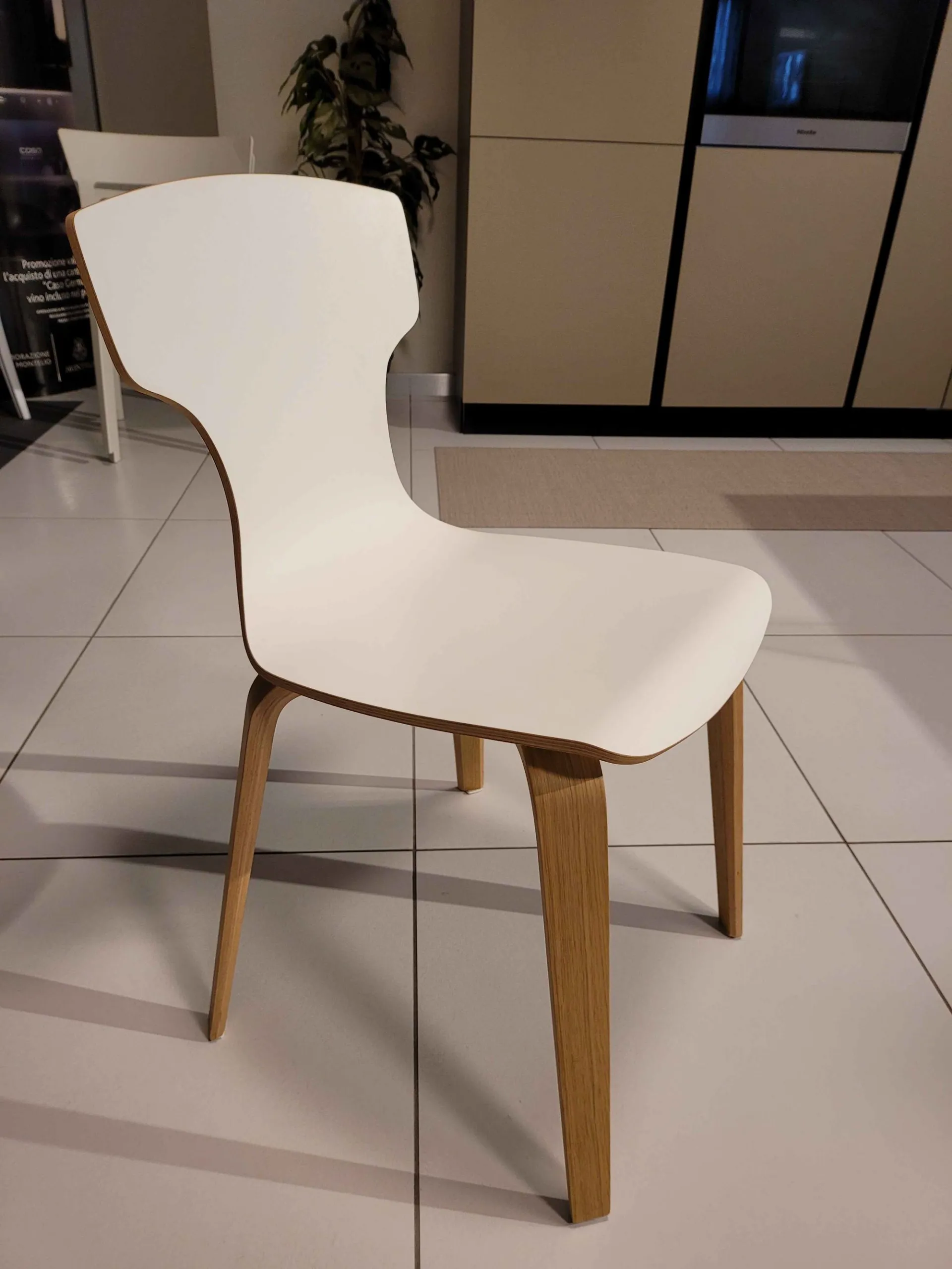 Chair HATfrom the curved lines.Completely wooden with legs in finish FINISH WILD NATURAL while sitting&and grave; infinitely natural laminated color WHITE
