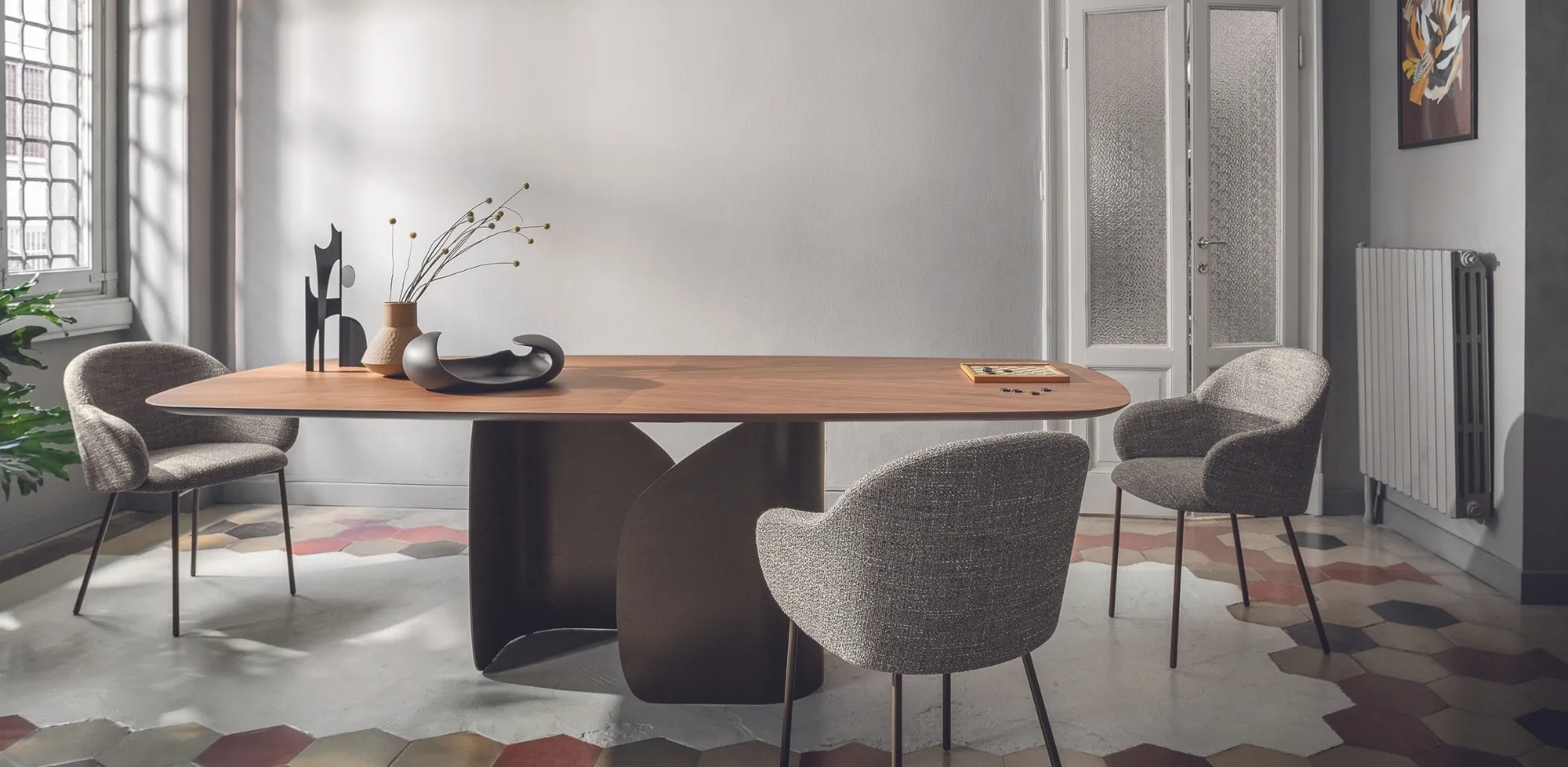 If you want a fabric chair to enrich the atmosphere of your home, find out more about the model in the picture and find a matching table. A wide selection of fixed dining chairs awaits you in the store: contact us for information and quotes and optimize your interiors with the excellence that only Calligaris can guarantee for furniture and accessories. In the living room or kitchen, chairs are essential pieces of furniture: they highlight the style of the room and play an essential role. The living room and kitchen are not really welcoming and comfortable if furnished with the wrong chairs, which is why they must be matched to the rest of the furniture and the size of the room. Calligaris Holly Fab Chair: this model will enhance spaces of all kinds, especially modern atmospheres.