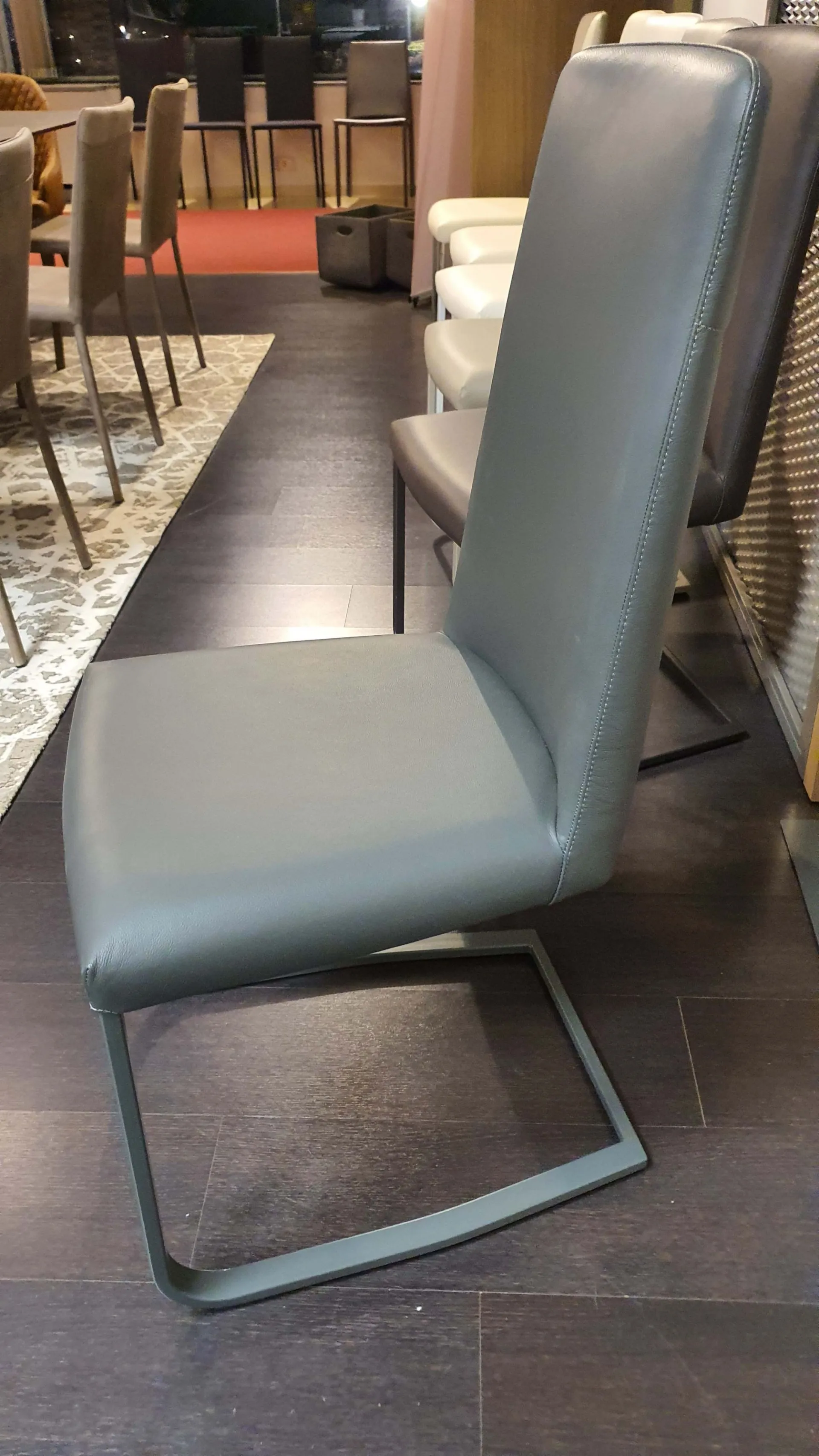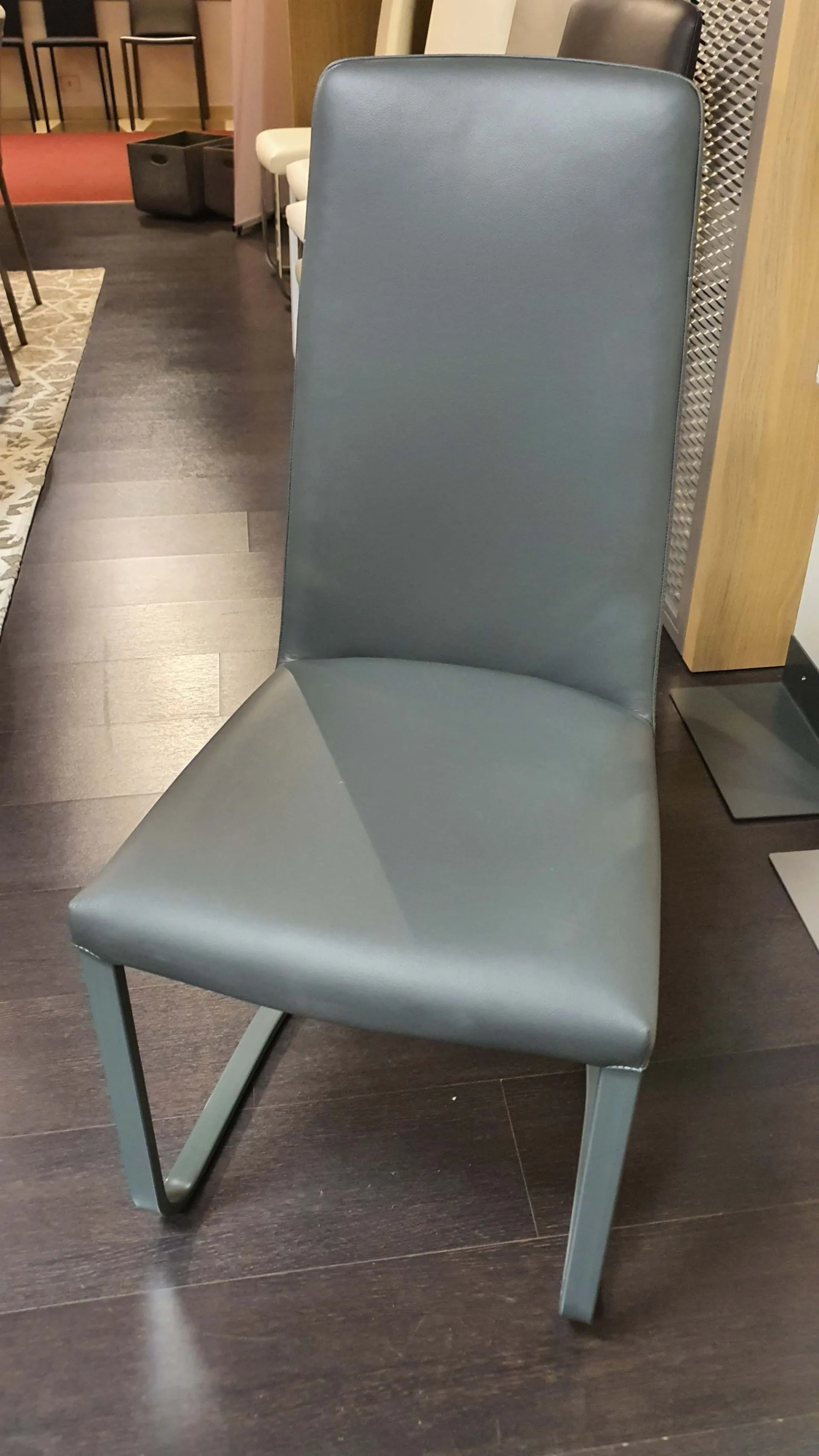 Chair mod. JAZZ in graphite leather P18 with metal base with matching color