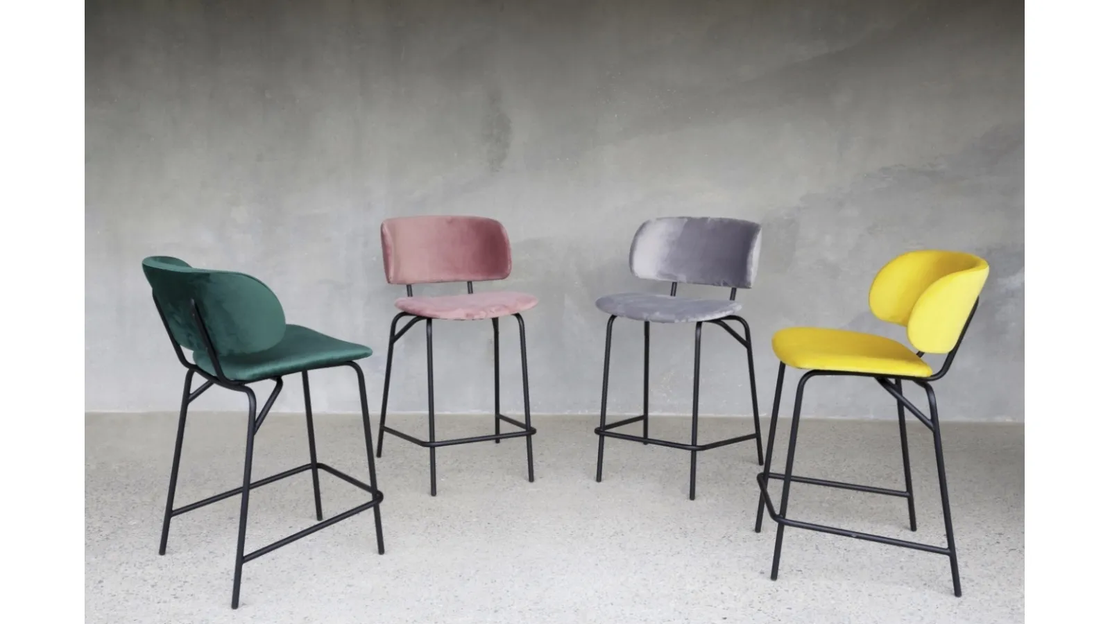 A fabric chair like the one visible here can furnish a living room or kitchen area with great design, enhancing and enriching the spaces. Among the best brands available at our Home Furniture store, you can find the most original kitchen bar stools on the market. Modern seats, both made of wood and upholstered, are complex furniture pieces characterized by an almost endless range of shades, shapes, and patterns. Besides fulfilling an essential function, these pieces of furniture can enhance even a monotonous and accessory-free space. In our store, we offer exclusive furniture and accessories, among which you will surely find the solution that suits you. Contact us and find out more about the Juliette Stool, an anti-stain velvet stool by La Seggiola, featured in the photo.