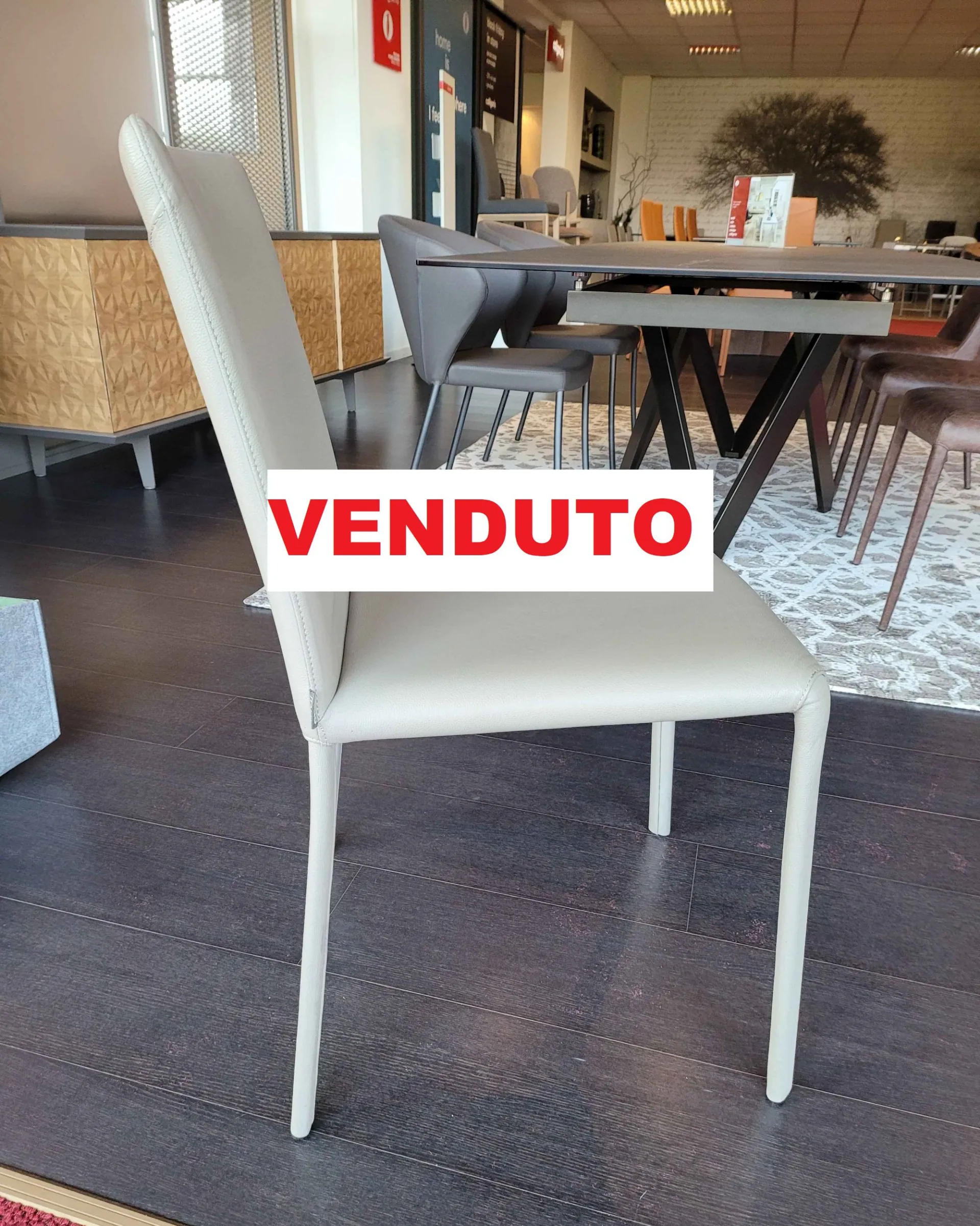 The cover completely covers the chair with its colorè Cremacaffè