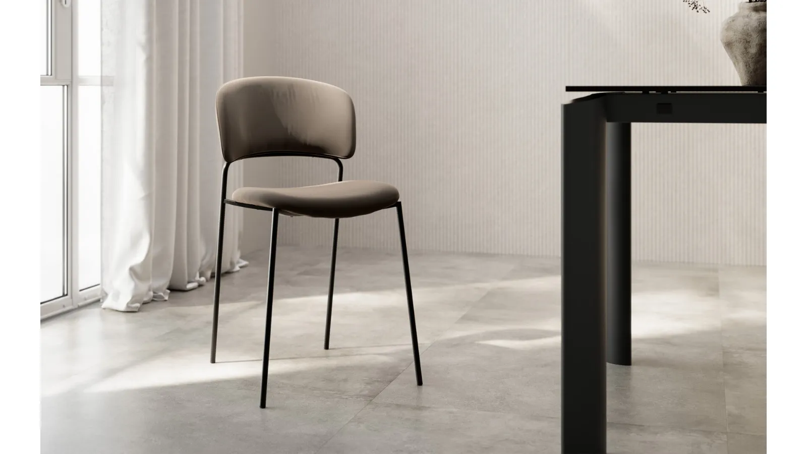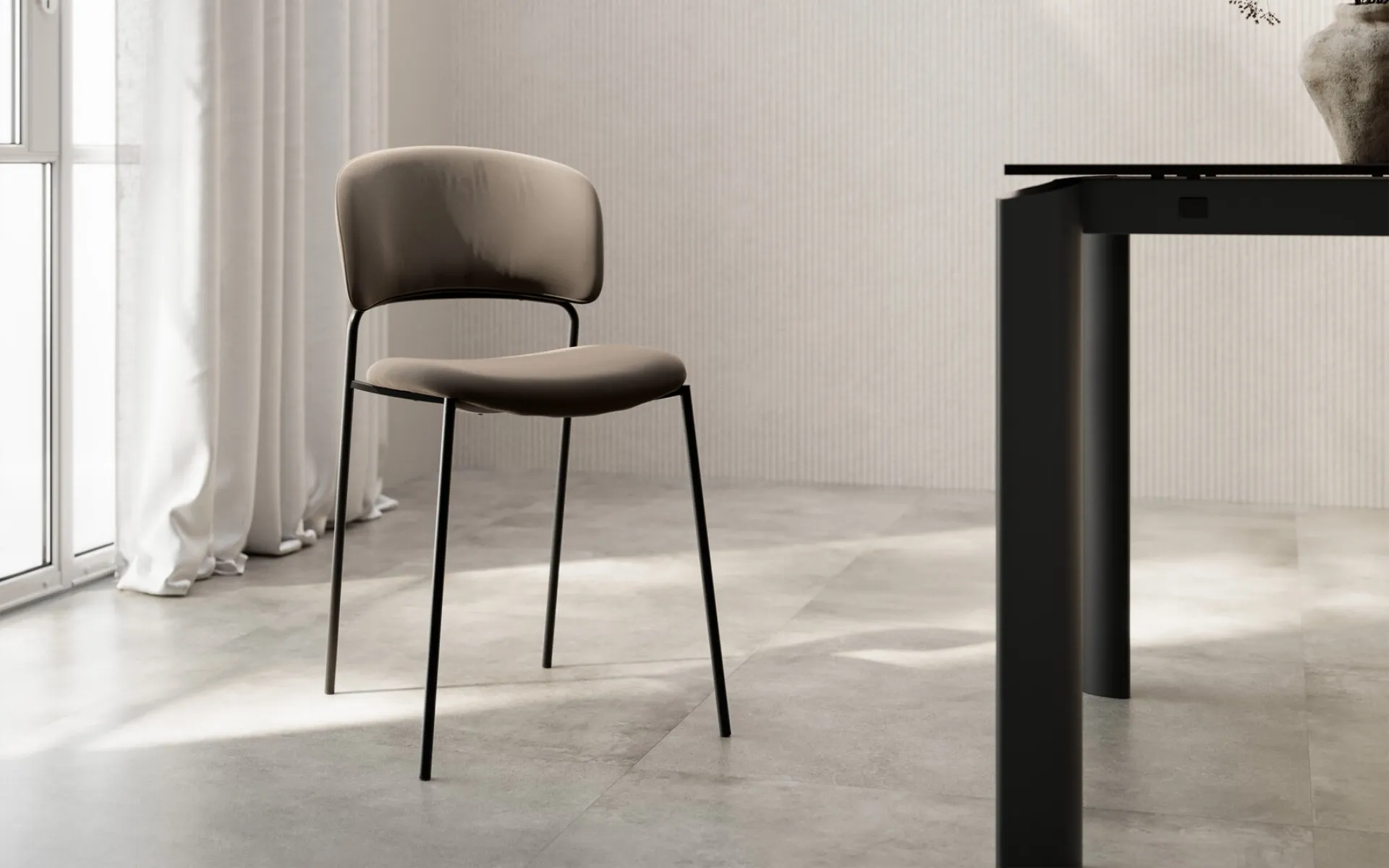 In the living room or in the kitchen, chairs are essential furniture: they underline the style of the environment and serve an indispensable function. If you want a fabric chair to enhance your home environment, find out more about the model in the photo and find a matching table. The living room and kitchen are not really pleasant and comfortable if furnished with the wrong chairs, which is why they need to be matched to the rest of the furnishings and the size of the room. A variety of fixed kitchen chairs are waiting for you in store: contact us for information and quotes and enhance your premises with the quality that only Arredo3 can guarantee for furniture and accessories. Arredo3's Maki chair: this model will customize spaces of all kinds, especially modern settings.