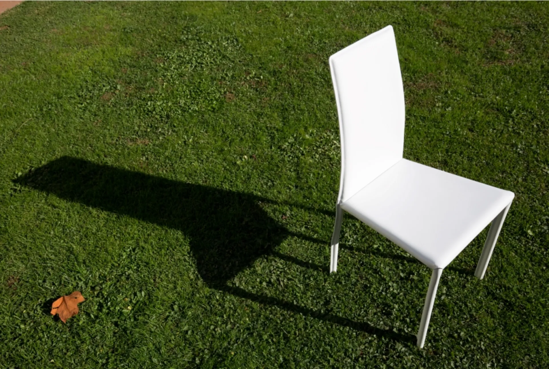 Simple regular chair in pure white eco-leather, with a fixed and geometric structure