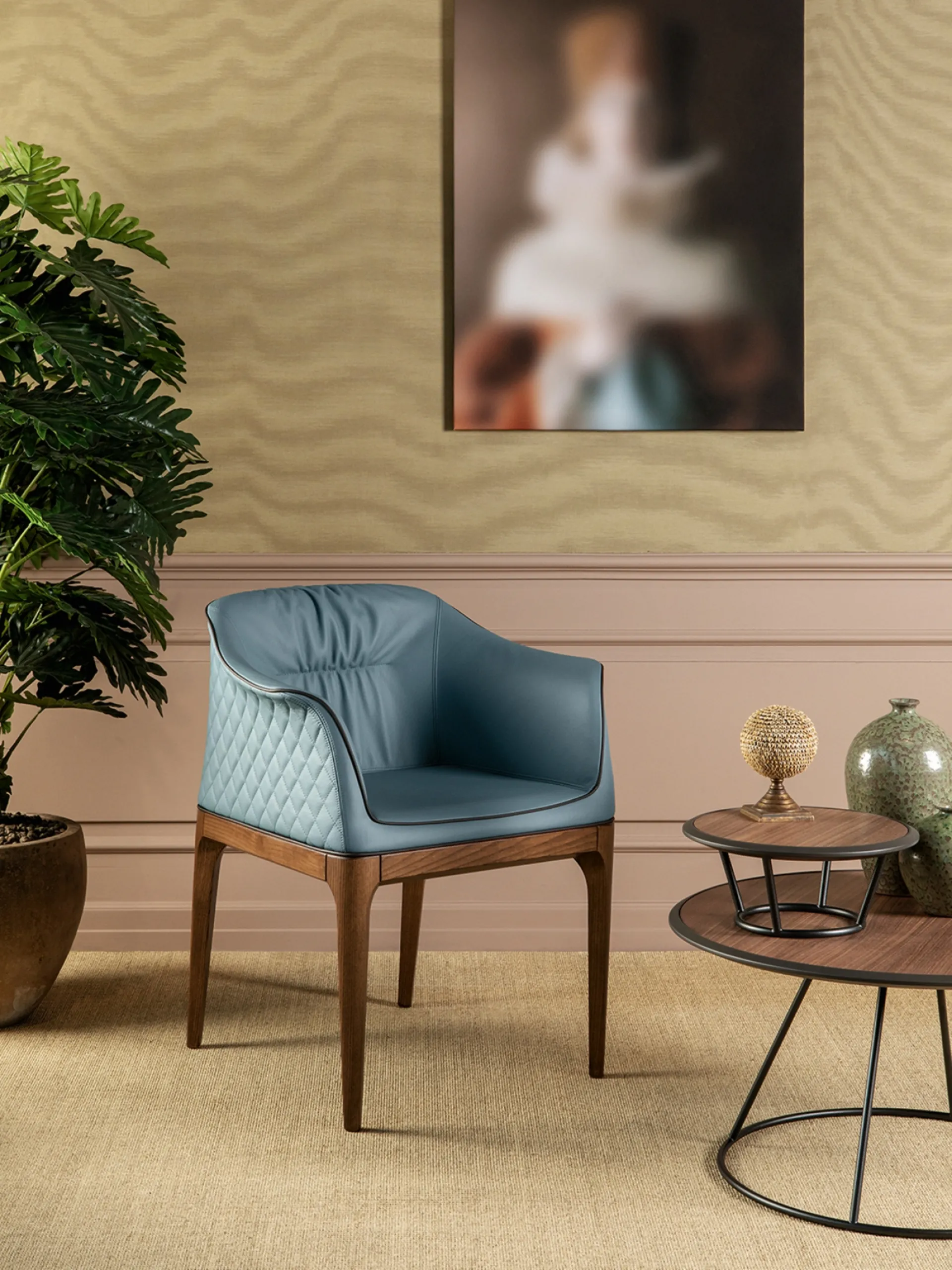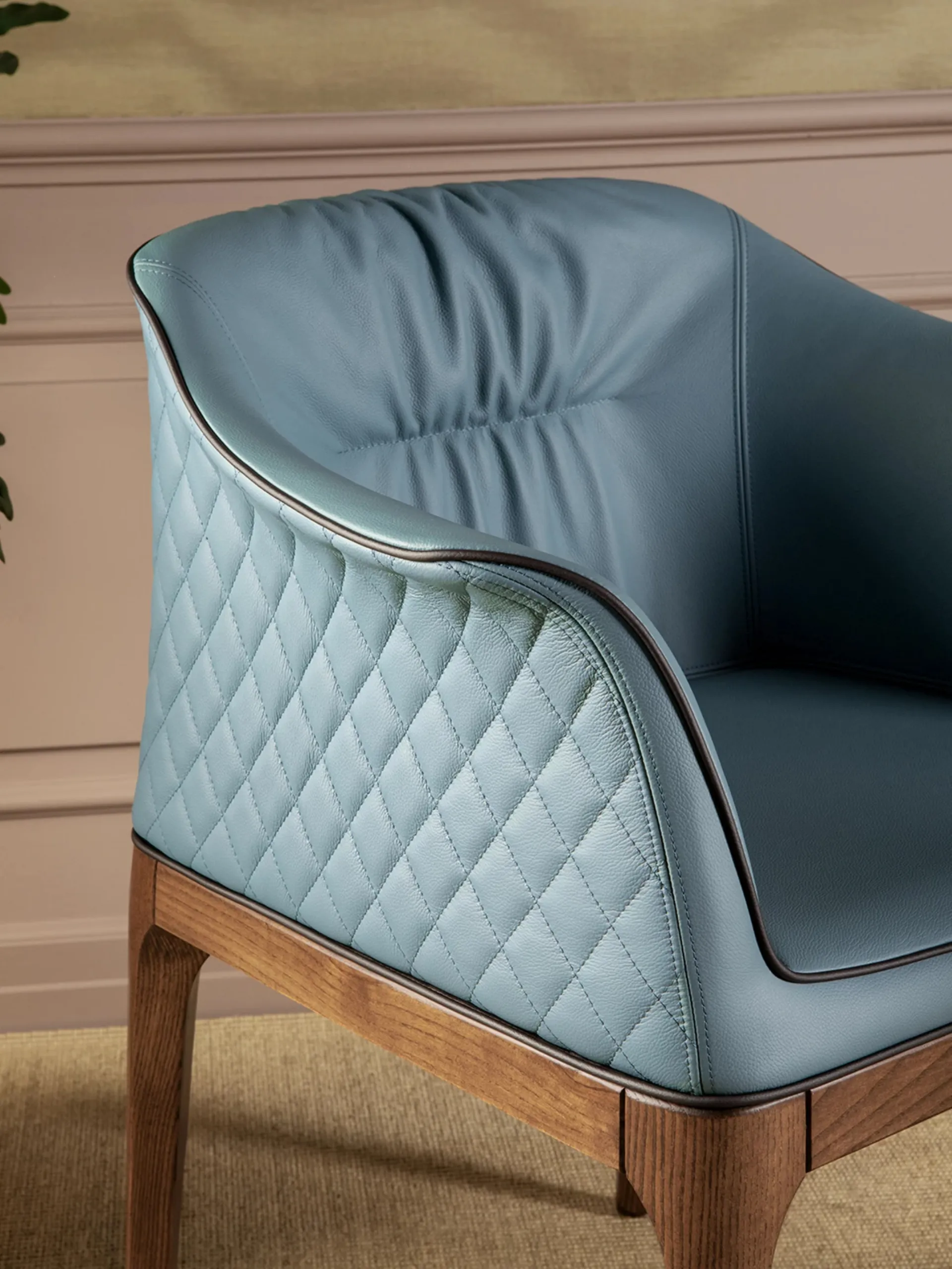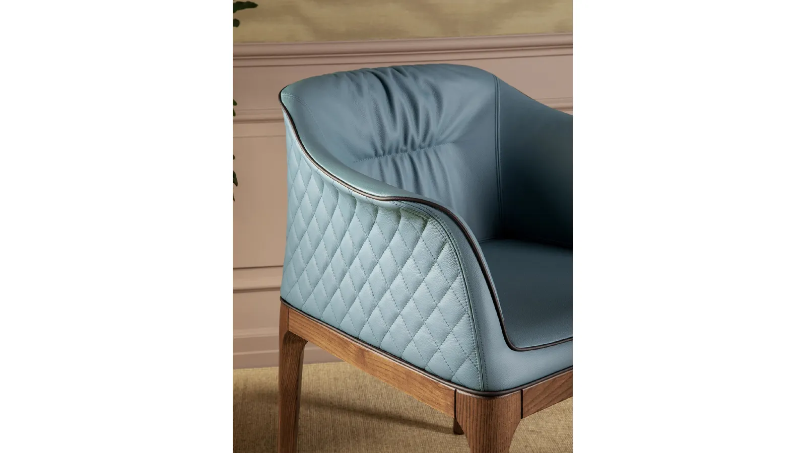Mivida chair in leather with Élite diamond quilted backrest by Tonin Casa