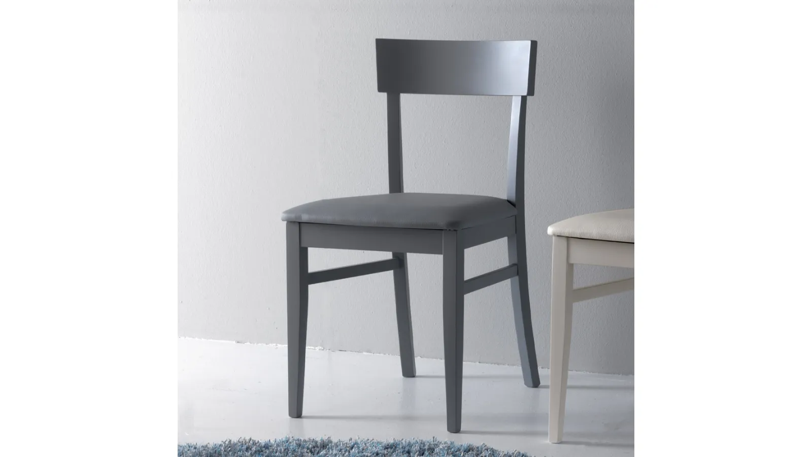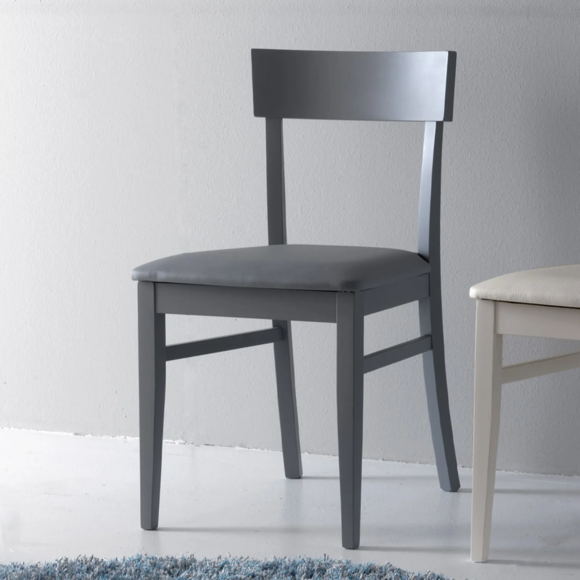 | Materiali: | Struttura in legno di faggio laccato, seduta in ecopelle |
