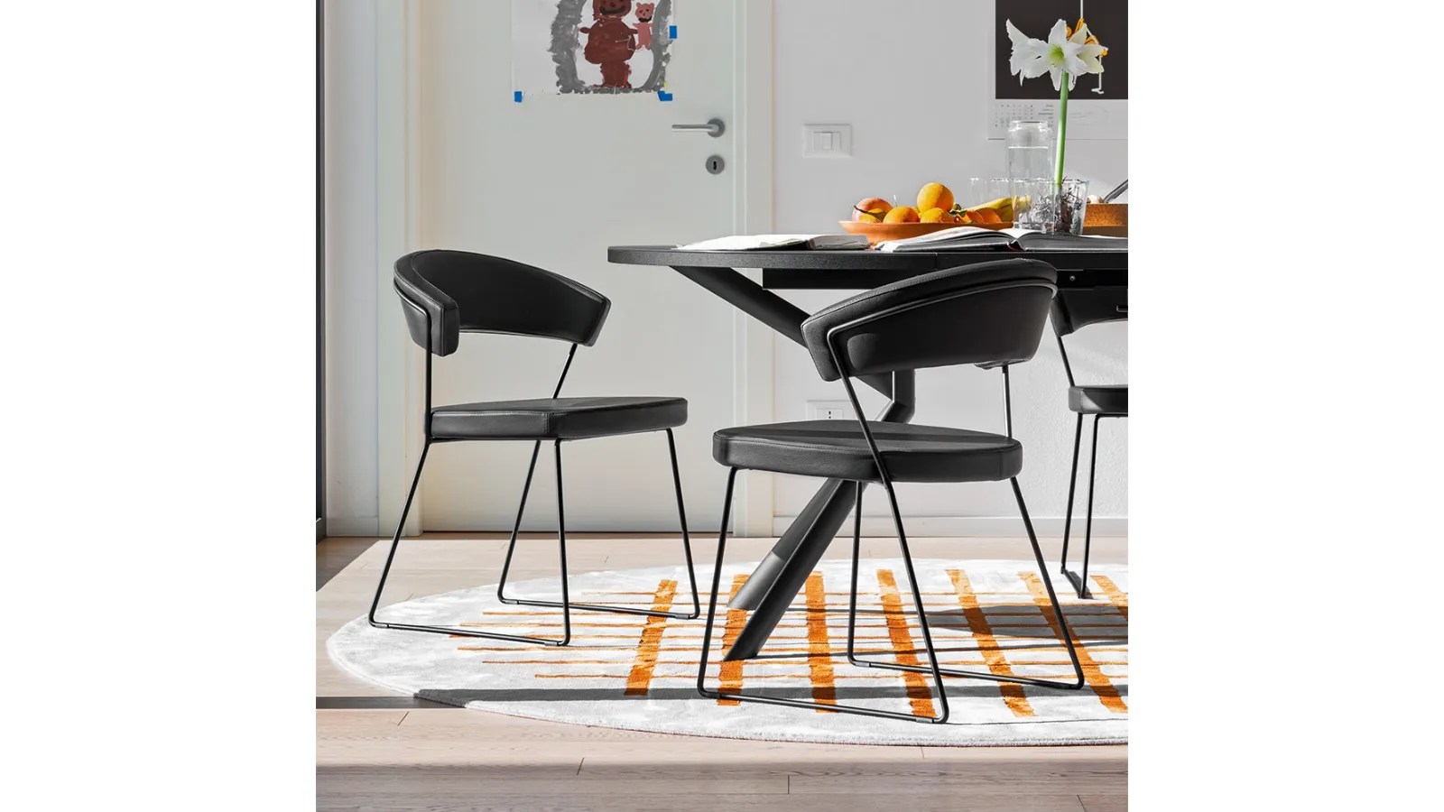 If you want to enrich design atmospheres, the model shown in the photo is the ideal choice for a room of this style. A rich range of furniture and accessories awaits you in the shop, where you will find the fixed eco-leather chairs of the best manufacturers. With this comfortable, ergonomic and highly aesthetic solution you can complete your furnishing project and embellish the room where you meet up with friends and relatives. The kitchen and dining room will not be truly versatile without the right chairs, to match the rest of the furniture and the style of your home. Taking a look at our eco-leather solutions will allow you to find the dining model you've always dreamed of. New York eco-leather chair by Connubia : choose one of the most exclusive proposals of the company, leader in the Home Furnishing sector.
