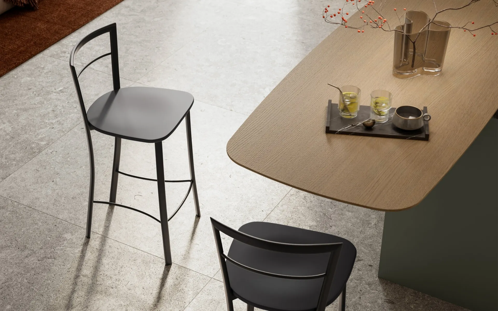 If you want a metal chair to enrich the atmosphere of your home, get information on the model in the photo and find a matching table. A wide range of kitchen stools is waiting for you in store: contact us for information and quotes and enhance your interiors with the quality that only Arredo3 can guarantee for furniture and accessories. In the living room or kitchen, chairs are essential furniture: they underline the style of the room and play an essential role. The living room and kitchen are not really pleasant and comfortable if furnished with the wrong chairs, which is why they should be matched with the rest of the furniture and the size of the room. Arredo3's Nicole Stool: this model will complement spaces of all kinds, especially modern settings.