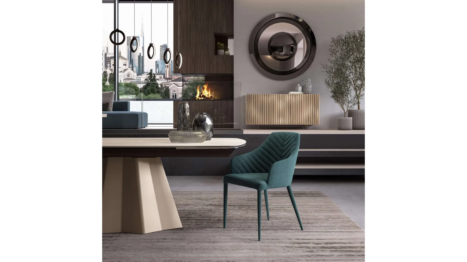 Ozzio Regiorgio Chair: this model will complement spaces of all types, especially modern atmospheres. The living room and kitchen area do not really feel welcoming and comfortable if furnished with the wrong chairs, which is why they need to be matched to the other furniture pieces and the dimensions of the room. An endless variety of fixed dining chairs awaits you in our showroom: contact us for information and quotes and optimize your spaces with the quality that only Ozzio can guarantee for furniture and furnishings. If you want a fabric chair to enhance the environment of your home, learn more about the model in the photograph and find a coordinating table. In the living room or kitchen area, chairs are essential furniture pieces: they define the mood of the room and play an essential role.
