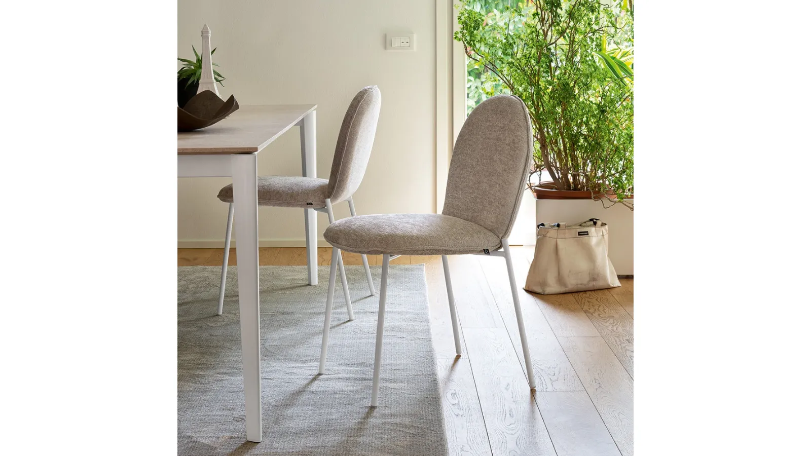 Contact us and get information about the Riley Mid Chair by Connubia model shown in the photo. Modern seats, whether in wood or upholstered, are complex furnishings, defined by an almost endless choice of colors, lines, and patterns. In our showroom, we present exclusive furniture and accessories, among which you will certainly find the solution that suits you. In addition to serving an essential function, these furnishings are able to enhance even a monotonous and accessory-free room. Among the best brands available in our Home Furnishing store, you will find the most exclusive dining chairs on the market. A fabric chair like the one visible here decorates a living room or a kitchen area with high aesthetic content, enhancing the spaces and adding value.
