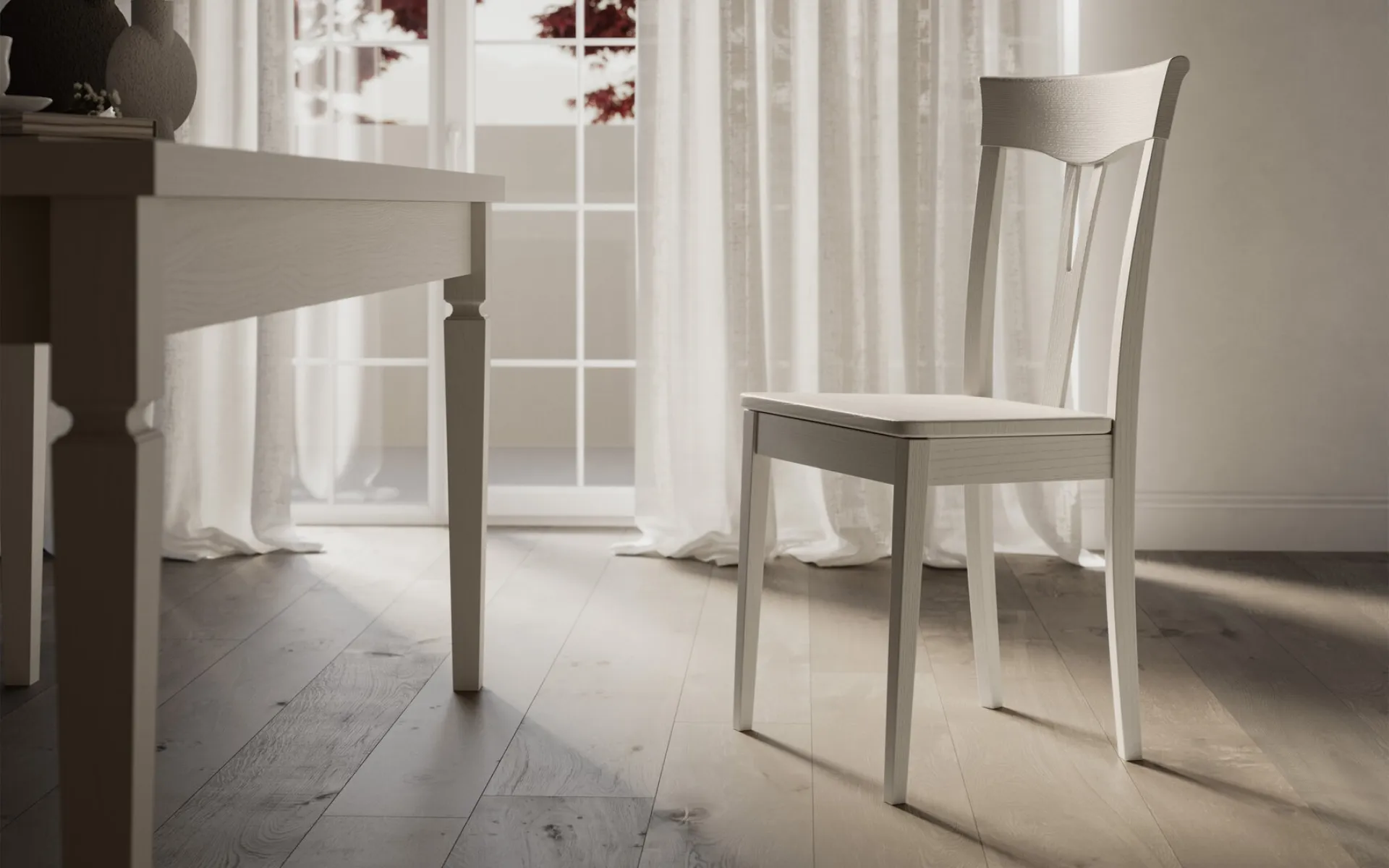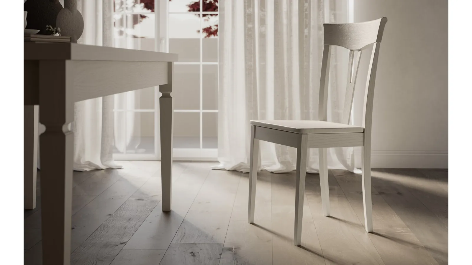 The right type of dining chair for your home will be defined on the basis of the style of the room, the measures and conformation of the space and peculiar housing problems. In the store you can choose one of the brand's fixed chair solutions, as well as be assisted by our expert store managers during the purchase. The chairs, together with the tables, underline the mood of the rooms: if you want to optimize the spaces by embellishing them, then our solutions await you. In the living room or kitchen, chairs are essential pieces of furniture, as they underline the style of the room and play an essential role. The charming model in the photo belonging to the practically infinite choice of modern dining solutions by Arredo3, available in multiple materials. Rose chair completely in wood by Arredo3 in wood: warms the atmosphere of the house, while the matching table will make the destination room completely liveable.