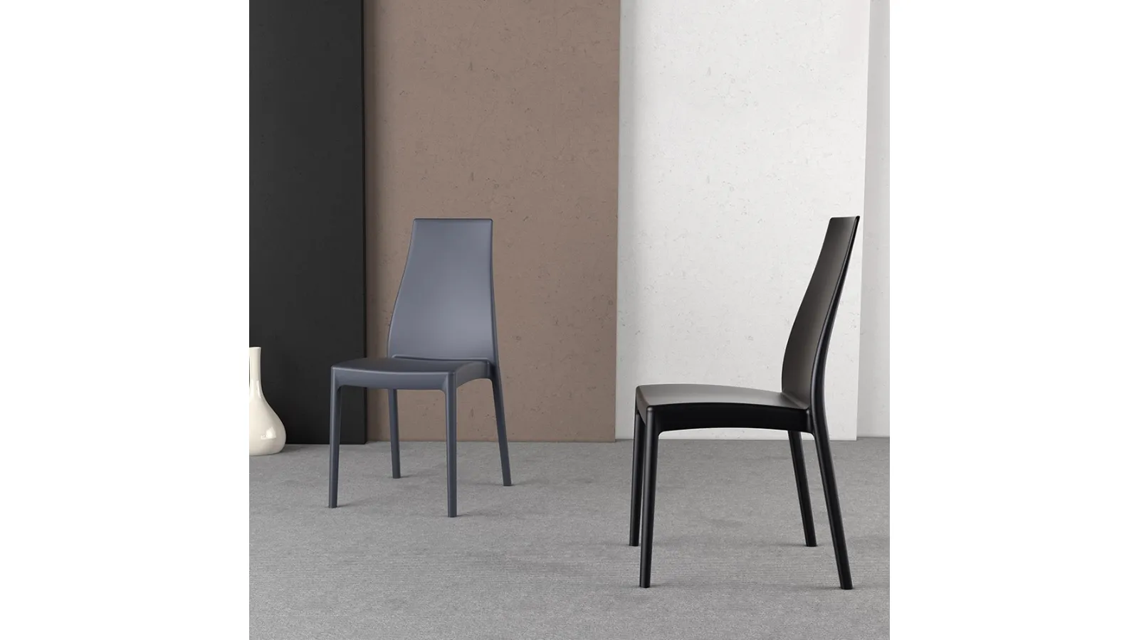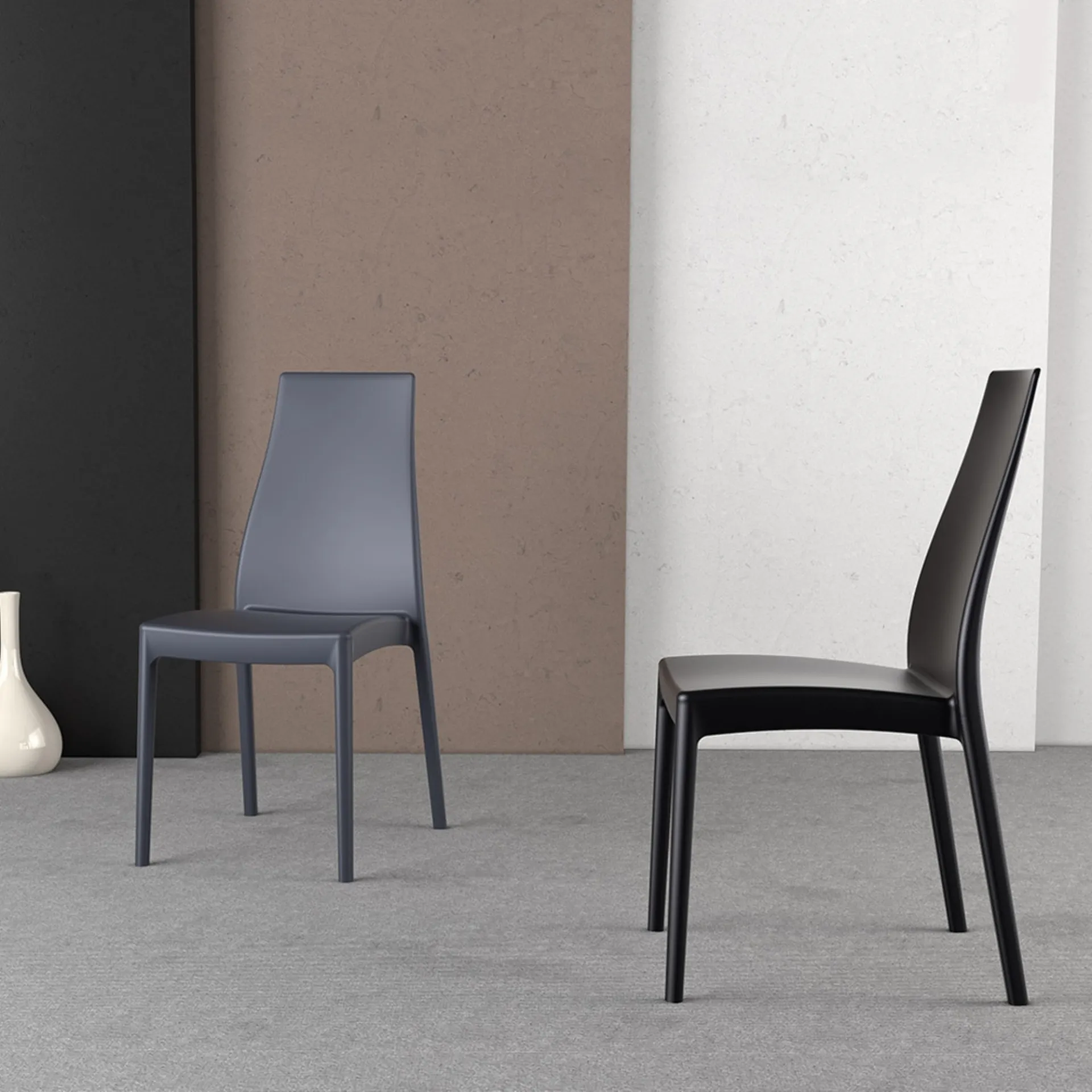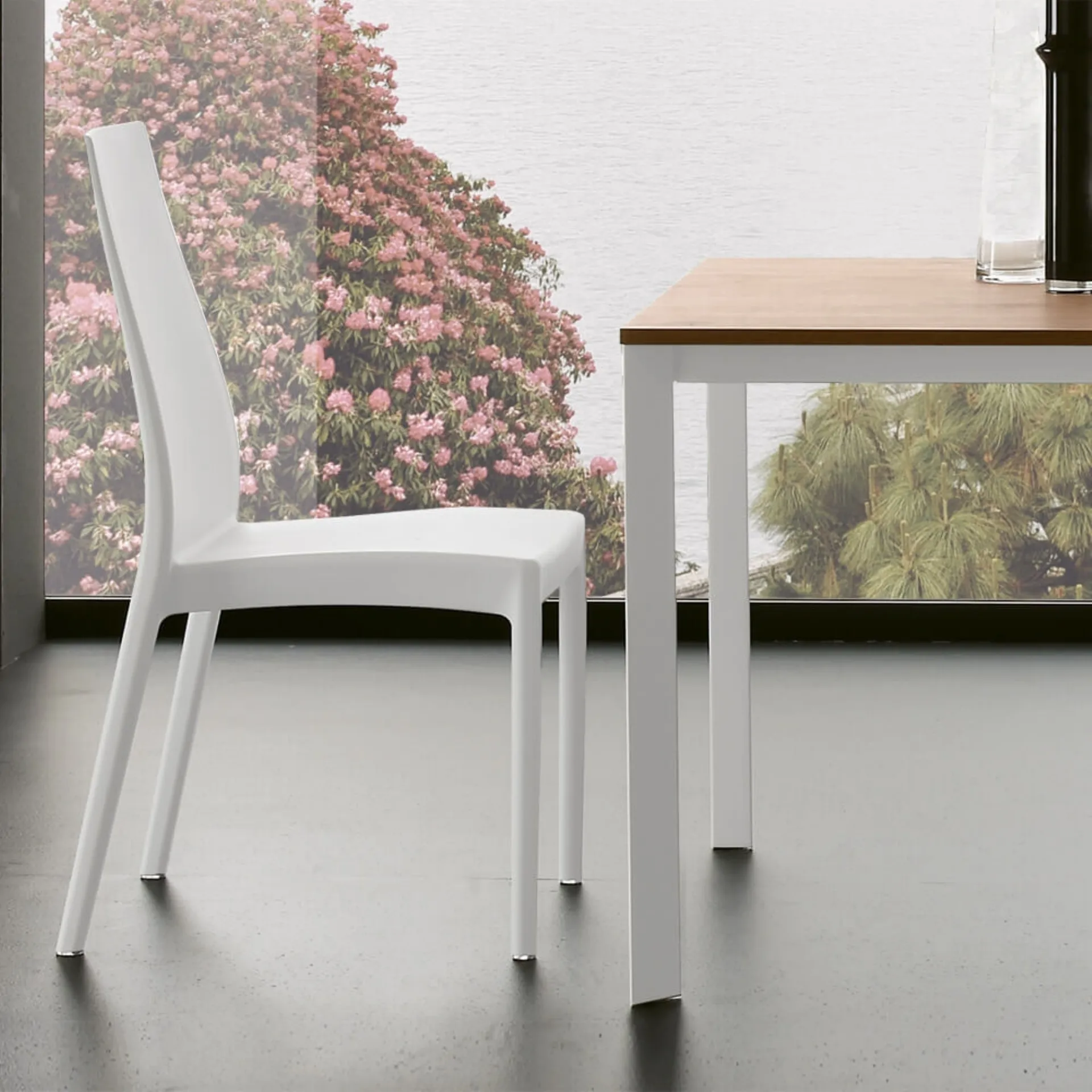 In the living room or kitchen, chairs are essential pieces of furniture, as they define the style of the environment and perform an essential function. The chairs, together with the tables, define the atmosphere of the interiors: if you want to optimize the spaces by enriching their aesthetics, then our solutions await you. Nicole chair by Ponti Terenghi in plastic: it warms up the atmosphere of the house, while the coordinated table will make the destination room purely livable. The charming model in the photo belongs to the practically infinite choice of modern dining solutions by Ponti Terenghi, available in multiple finishes. The right type of dining chair for your home will be defined according to the style of the environment, the size and shape of the space and peculiar housing problems. In the shop you will be able to see one of the stackable chairs proposed by the brand, as well as request to be followed by our expert interior designers during the purchase.