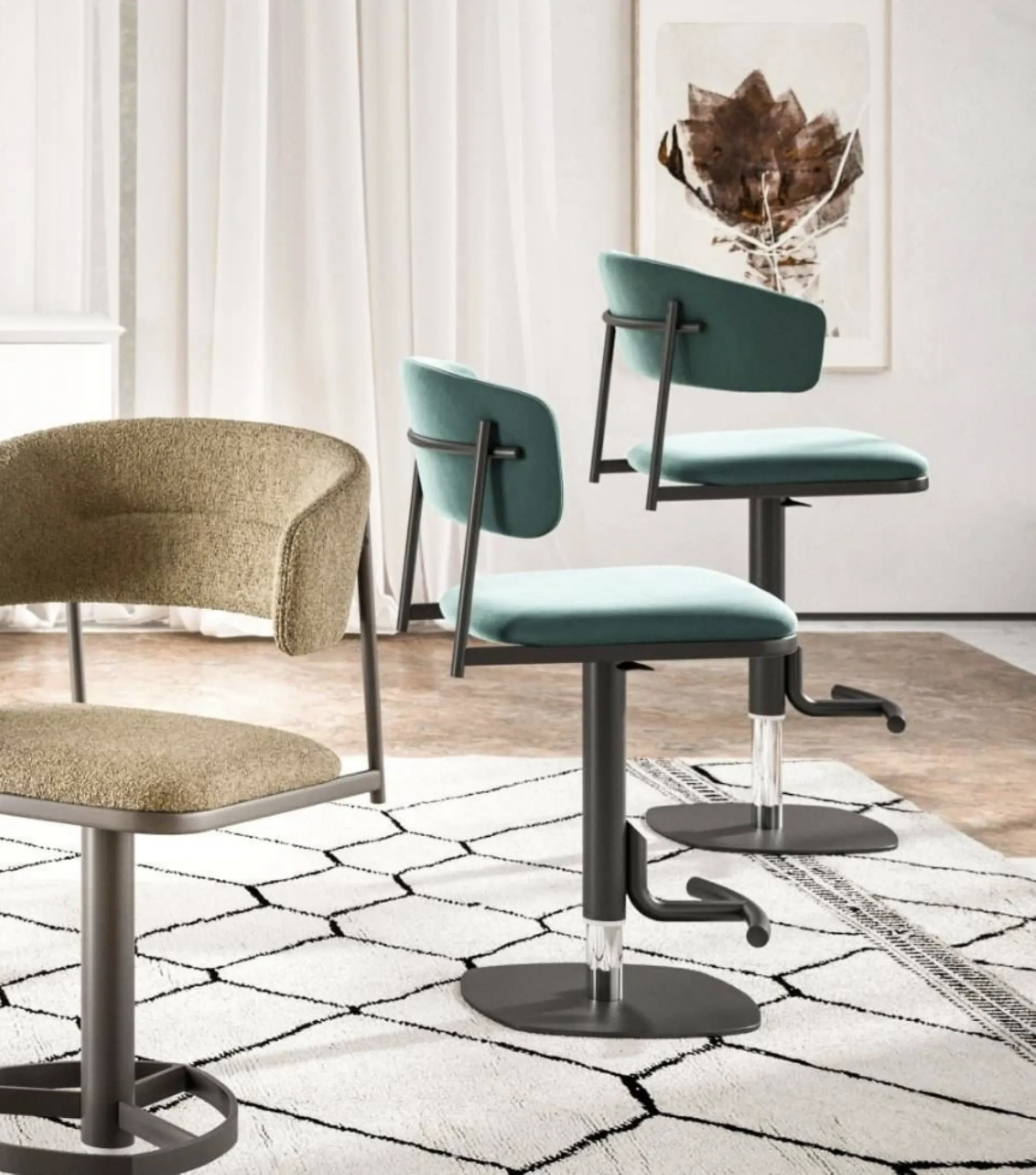 Among the best brands available in our Furniture Home Como store, you will find the most exclusive Kitchen Bar Stools on the market. A fabric chair like the one pictured here will furnish a living room or a high-quality kitchen, enhancing the spaces and making them more precious. Modern seats, both in wood and upholstered, are complex furnishings, defined by an almost infinite range of colors, lines, and patterns. In our store, we present exclusive furniture and accessory elements, among which you will certainly find the solution that suits you best. Contact us and discover more about the model of Adam and Alida fabric stools by Ozzio shown in the photo.
