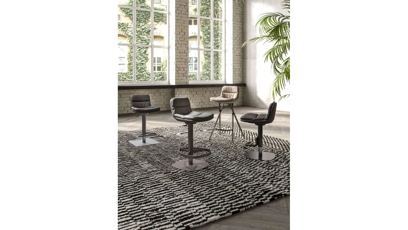 The purchase of chairs is truly essential: around the table we gather every day for meals or to talk with family and friends. Discover our range of furniture and optimize your spaces: material options offered are wood, plastic, and metal. In our showroom, you will find a wide range of Home Furnishings from the best brands, including various Ozzio stools. Ozzio Milo - Morfeo - Morris - Marlon stools: contact us for information and quotes on a practically infinite range of leather, ergonomic, and beautiful design seats. When purchasing furniture and kitchen accessories for your home, it is essential to consider measurements, materials, and style to find the model you have always desired.