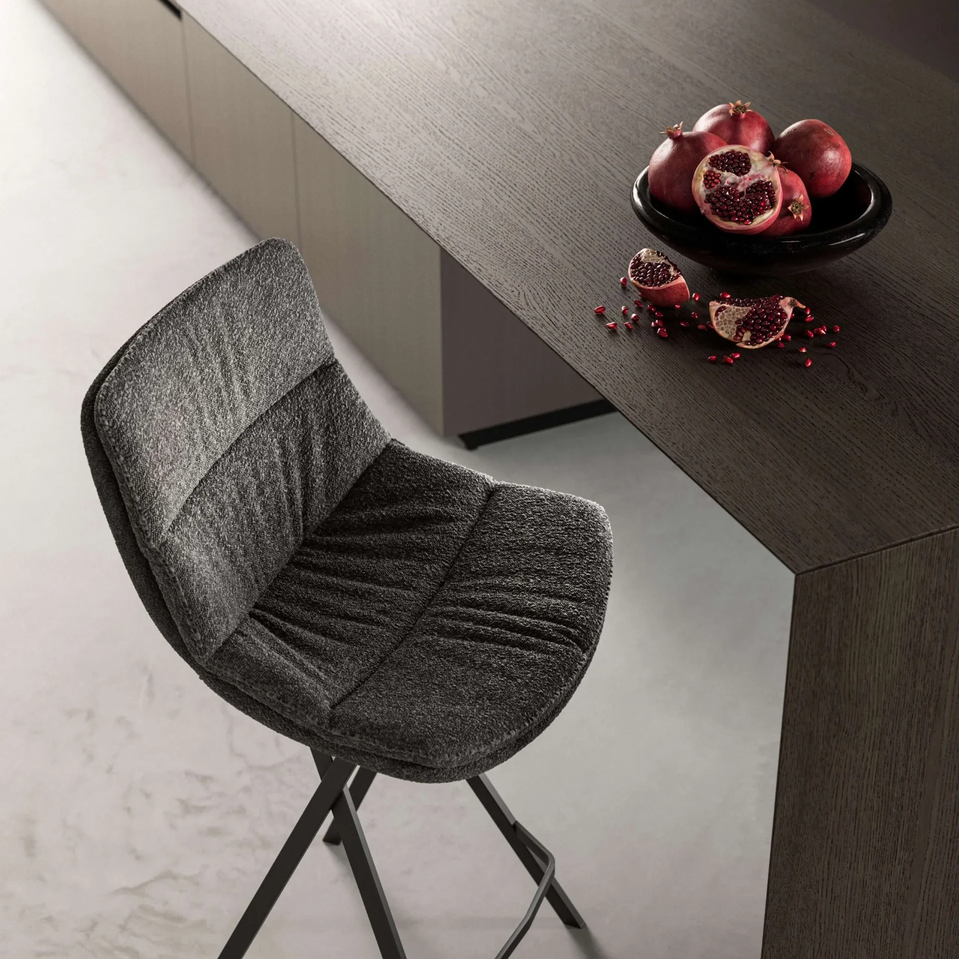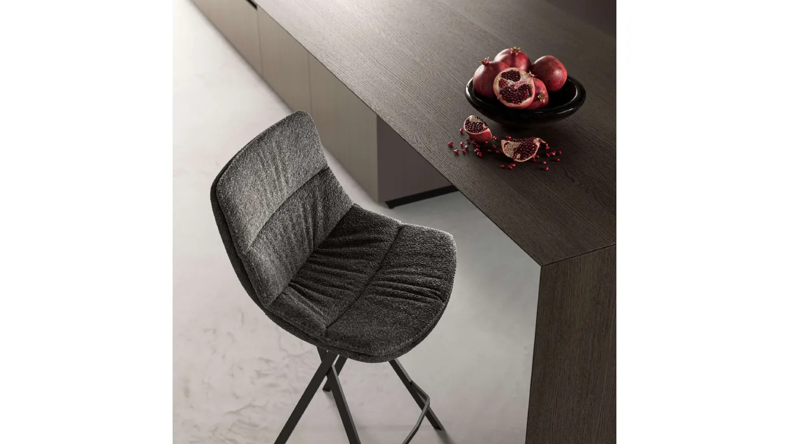 If you desire a fabric chair to enhance the environment of your home, learn more about the model in the photo and find a matching table. A wide variety of kitchen stools awaits you at our store: contact us for information and quotes and optimize your spaces with the excellence that only Ozzio can guarantee for furniture and accessories. In the living room or kitchen area, chairs are essential furniture: they enhance the style of the environment and serve an essential role. The living room and kitchen area are not truly welcoming and comfortable if furnished with the wrong chairs, which is why they need to be matched with the rest of the furniture and the room's measurements. Roy fabric stool by Ozzio: this model will complement spaces of all kinds, especially modern atmospheres.