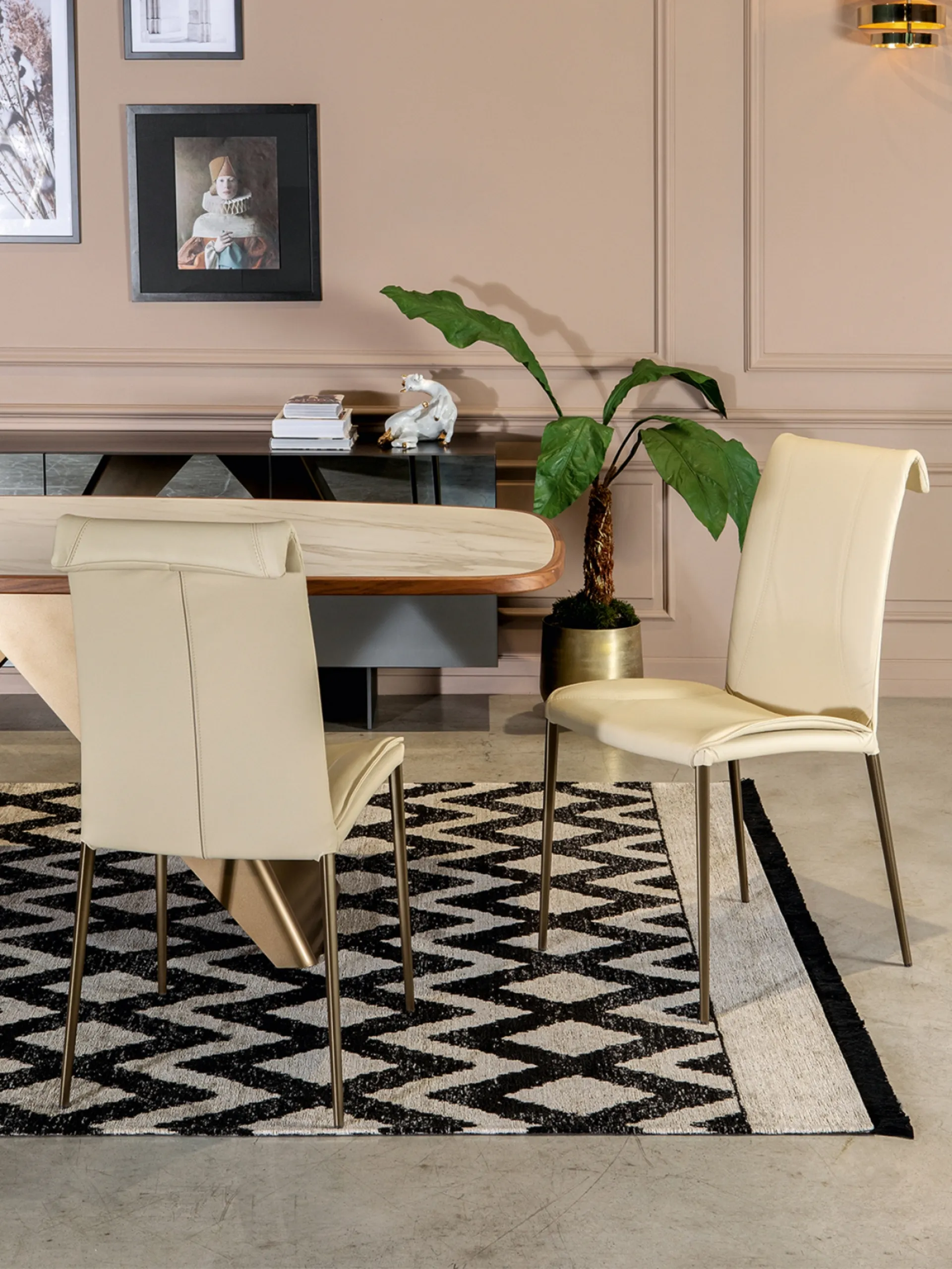 In the shop we present exclusive furniture and accessories, among which you will surely find the right solution for you. In addition to responding to an essential function, these pieces of furniture can emphasize even an impersonal room with no accessory elements. Among the best brands available in our Home Furniture shop you will find the most exclusive fixed dining chairs on the market. Contact us and find out more about the Tonin Casa Sofia chair model shown in the picture. A leather chair like the one shown here furnishes a living room or a kitchen area of great design, completing the spaces by embellishing them. The modern chairs, both in wood and upholstered, are complex furnishings, defined by an almost infinite choice of shades, lines and patterns.