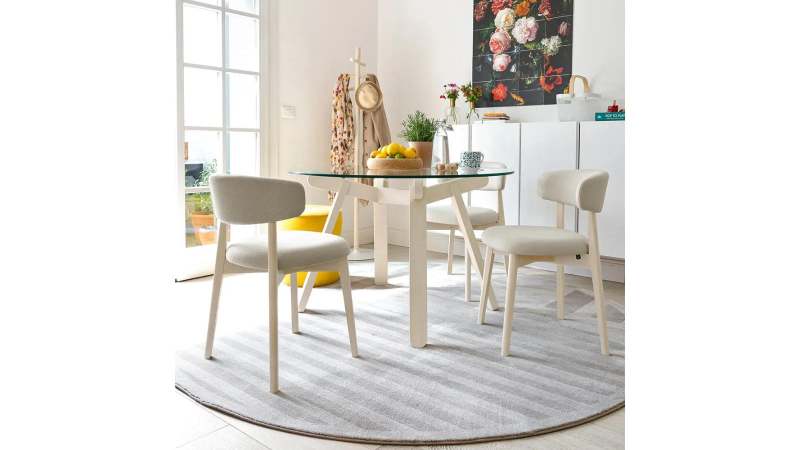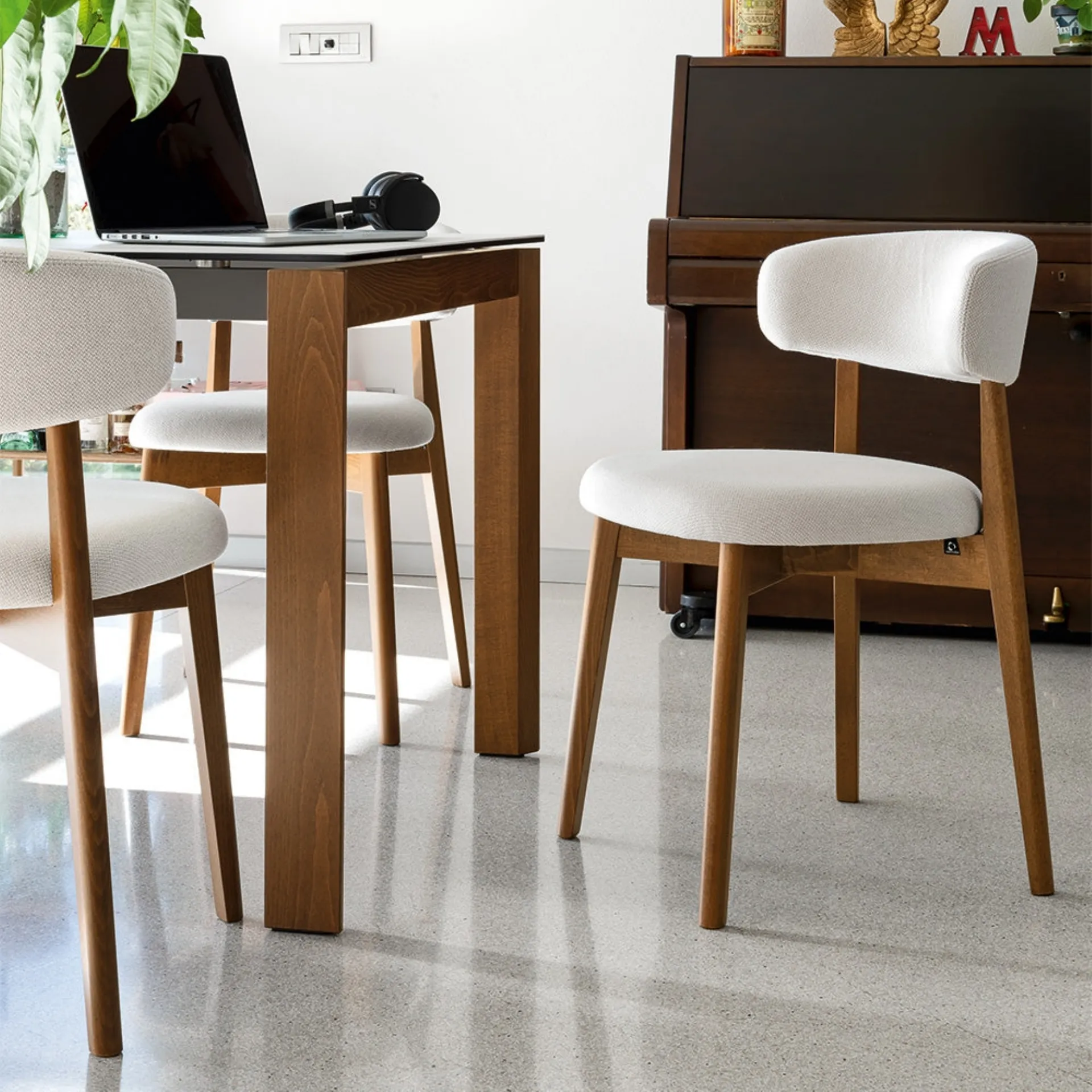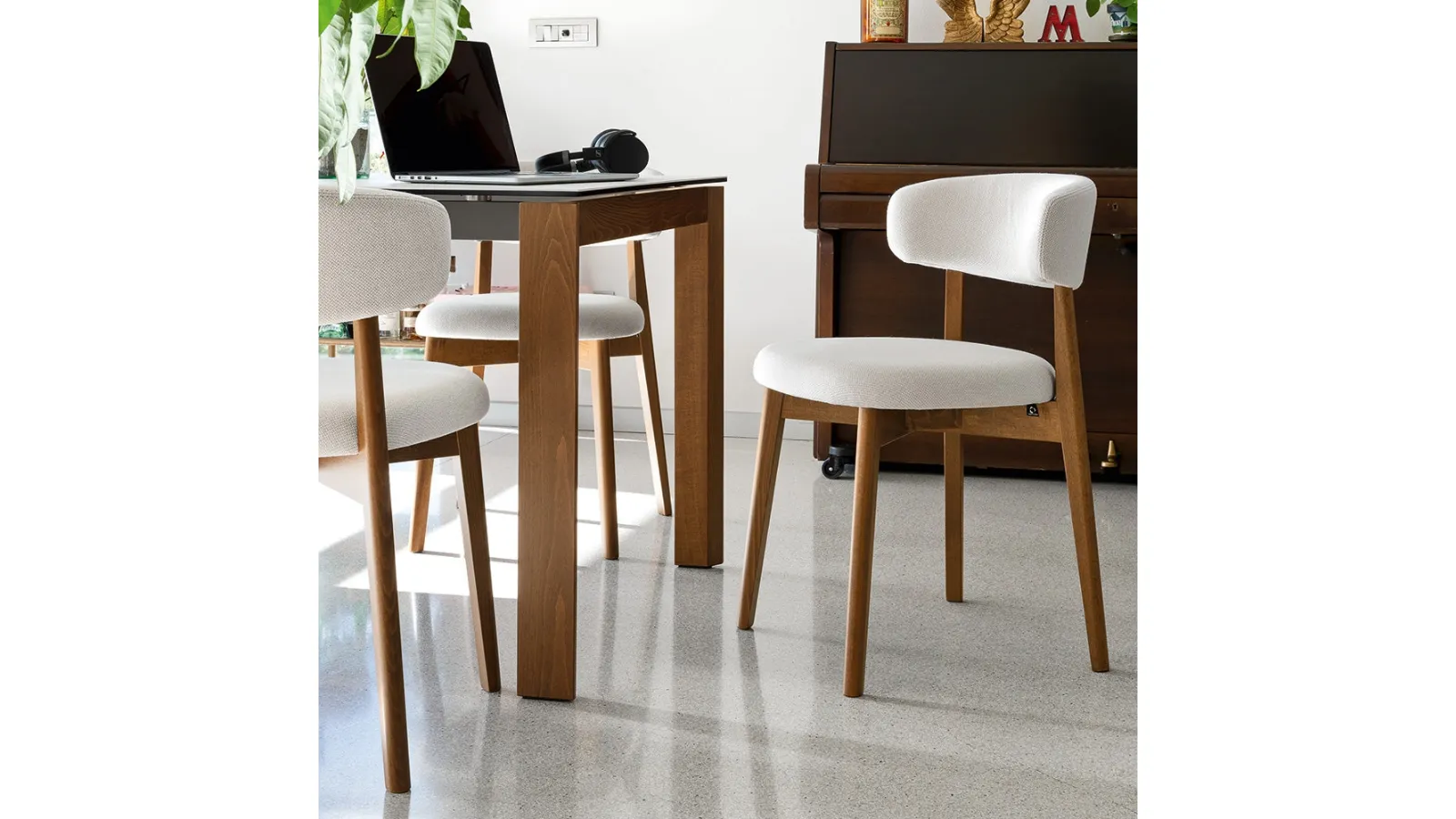 The Connubia Talks fabric chair visible here is part of our line of modern fixed chairs