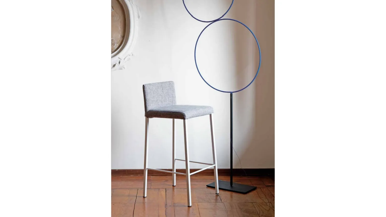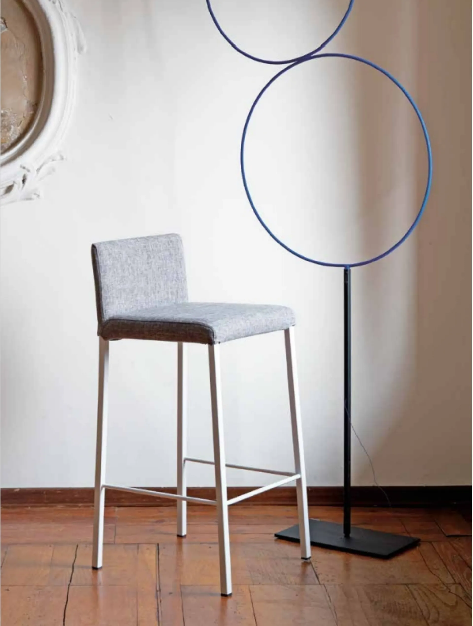 Discover the model with modern lines Treviso High Back Stool in fabric: it is part of our collection of stool solutions