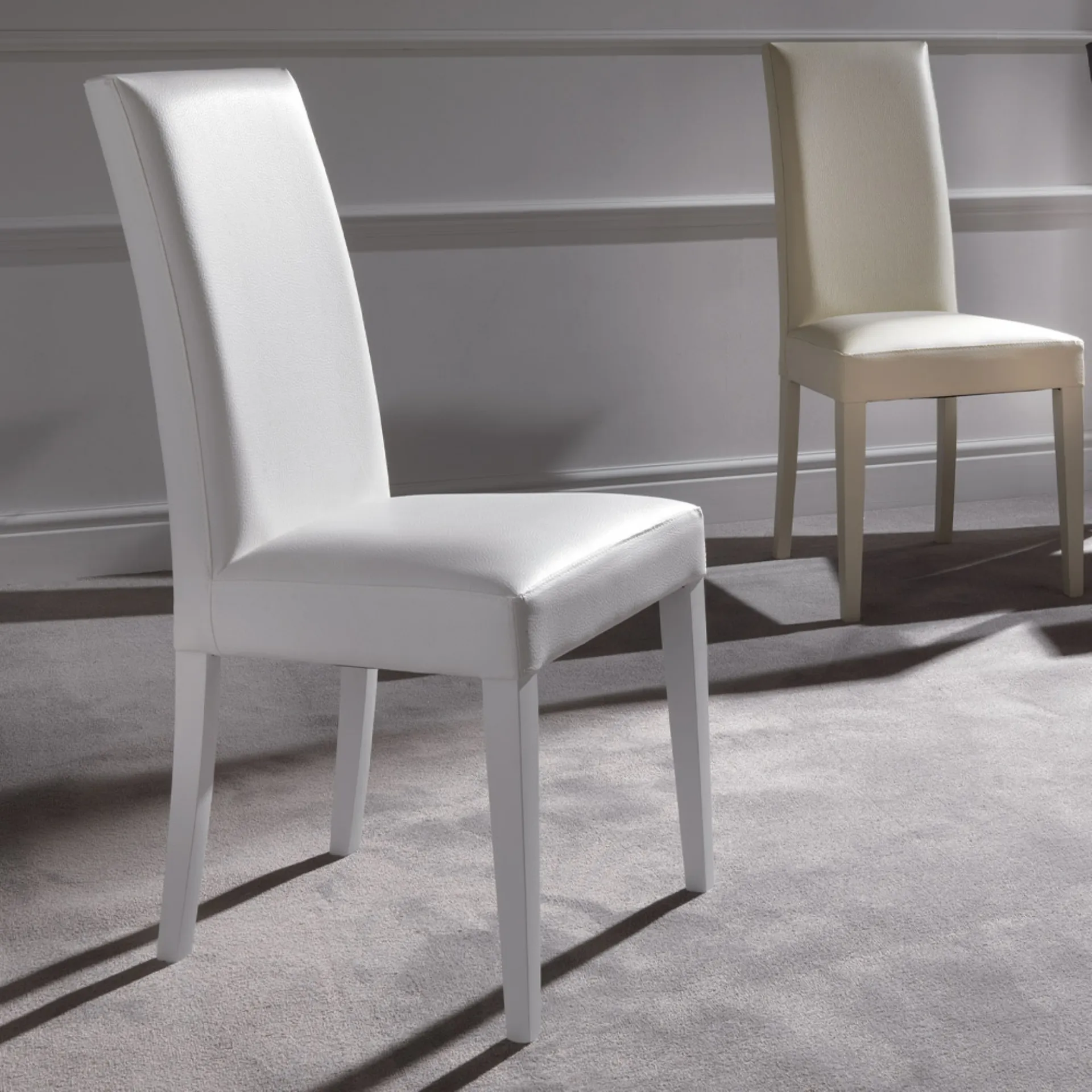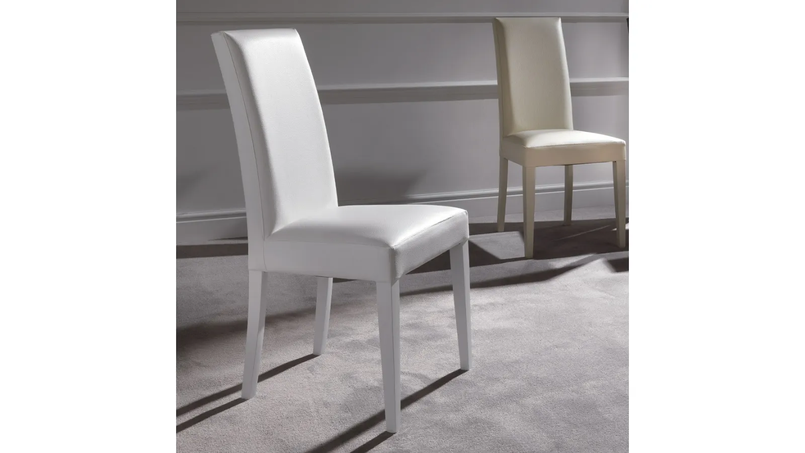 La sedia Vertigo Slim di La Seggiola si distingue per la sua solida struttura interna in legno, sapientemente imbottita per un comfort ottimale e rivestita in ecopelle di alta qualità. La sua versatilità cromatica include finiture come bianco, sabbia, titanio, grigio ghiaccio e testa di moro, permettendo un'integrazione armoniosa in vari contesti d'arredo. Le gambe in legno sono laccate in tinta con il rivestimento, ad eccezione della versione testa di moro che presenta una finitura wengè, evidenziando una cura meticolosa nei dettagli costruttivi. Con uno schienale ergonomico e un design essenziale ma incisivo, Vertigo Slim è concepita per conferire eleganza e funzionalità agli spazi living. Progettata per garantire robustezza e un'estetica raffinata nel tempo, questa sedia rappresenta un investimento mirato alla durabilità e al comfort prolungato.