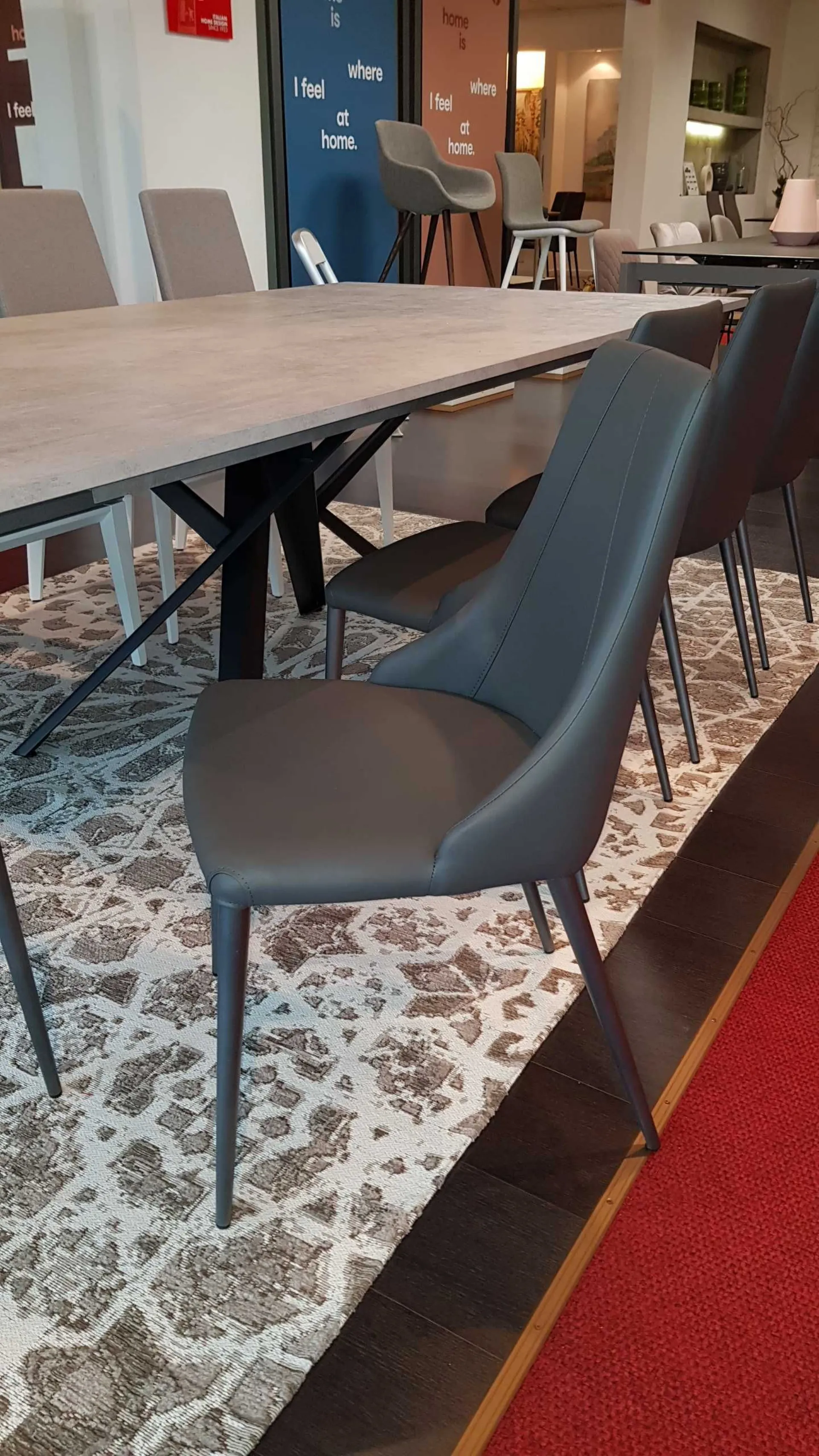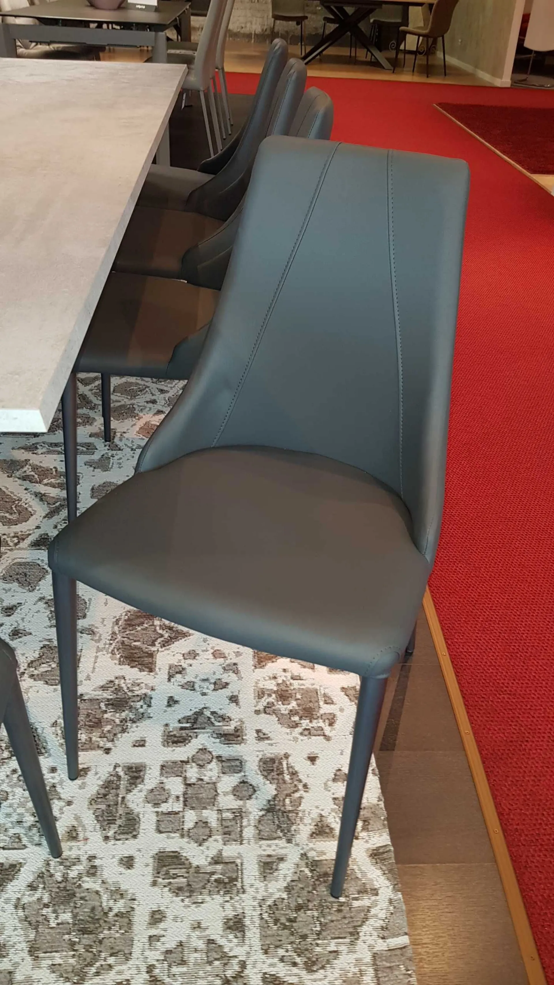 VICTORIA chair, seat in ECO GRAPHITE LEATHER. LEG in GRAPHITE metal