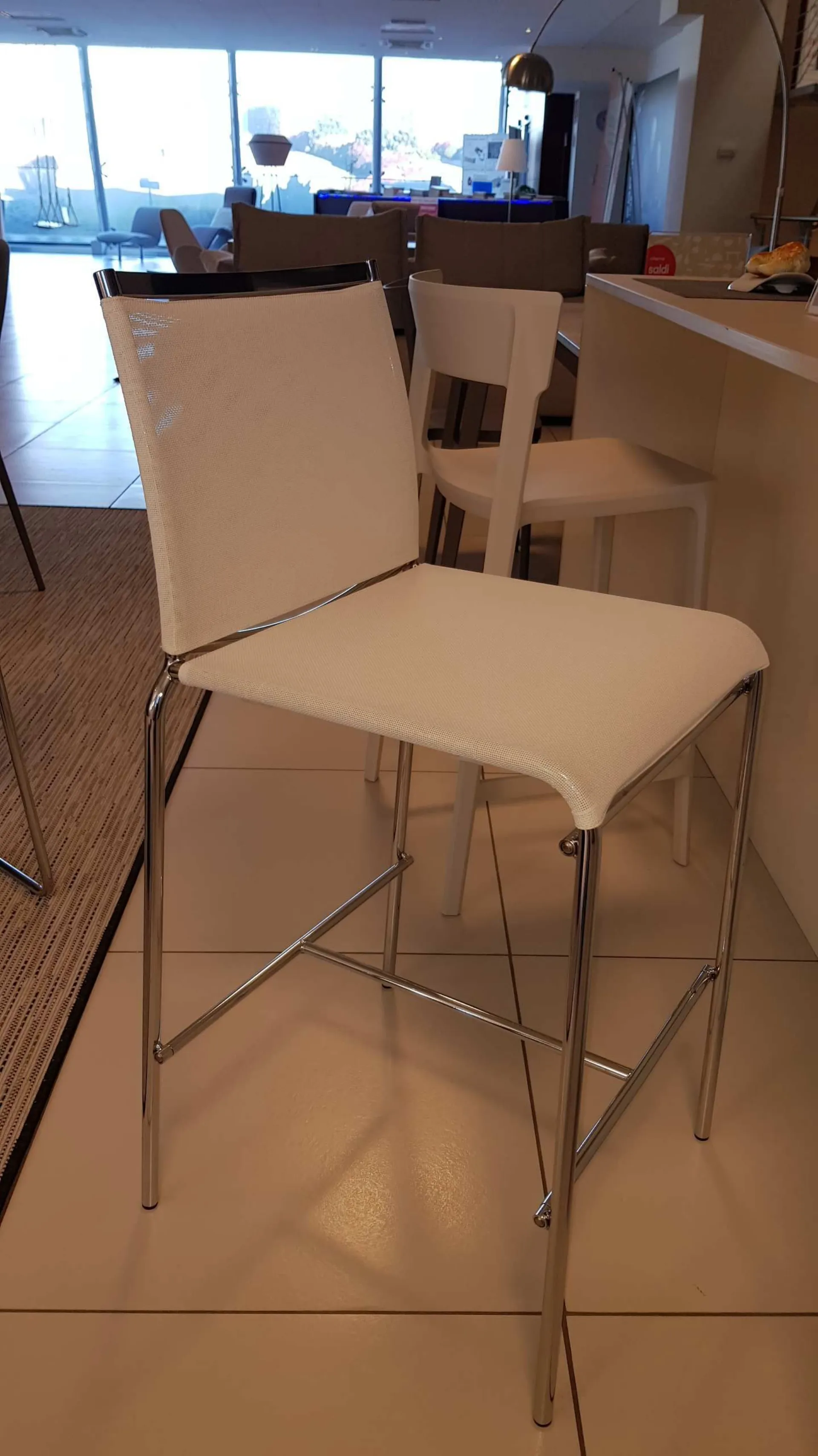 Calligaris stool model WEB CS/1458 with chromed structure and backrest P77, white joy seat S70 *** LAST PIECE AVAILABLE ***