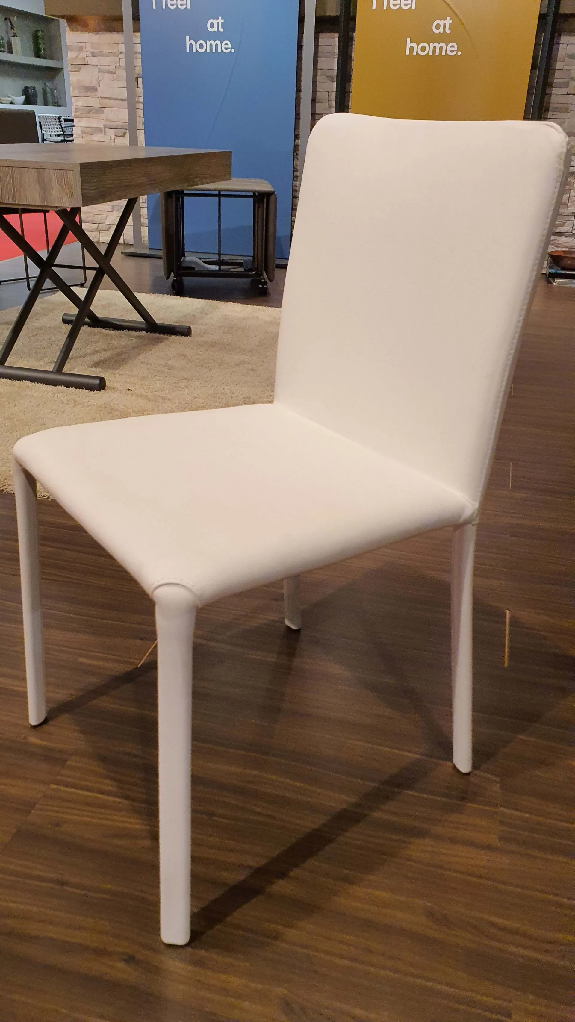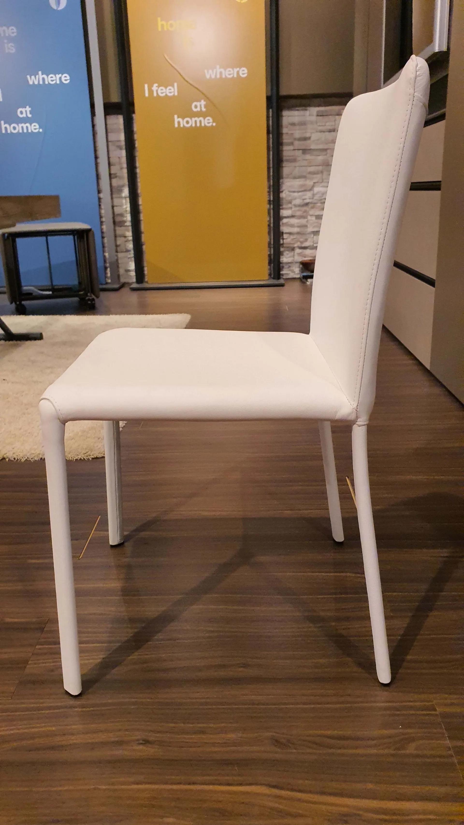 The WHITE leather completely covers the chair with visible tone-on-tone stitching