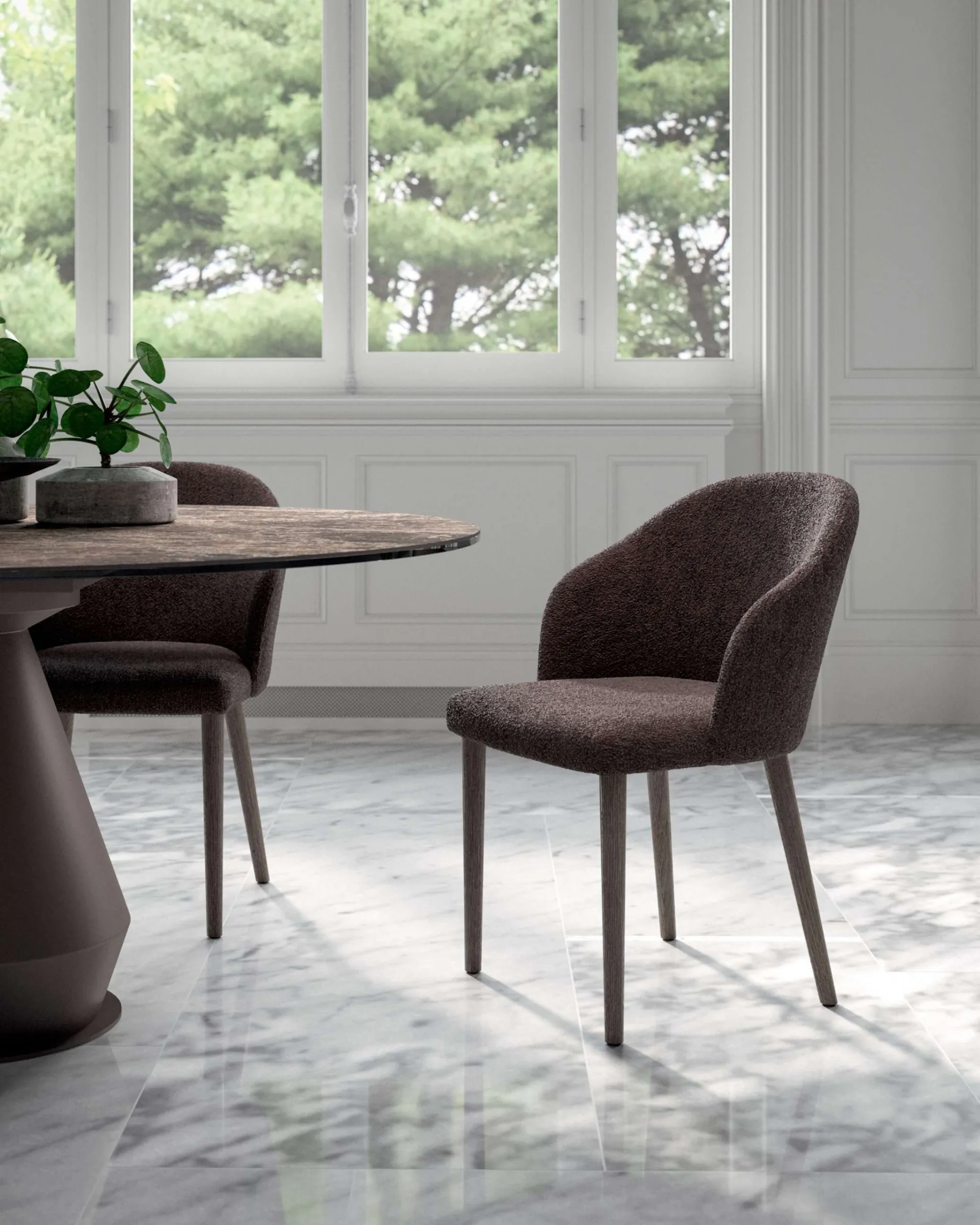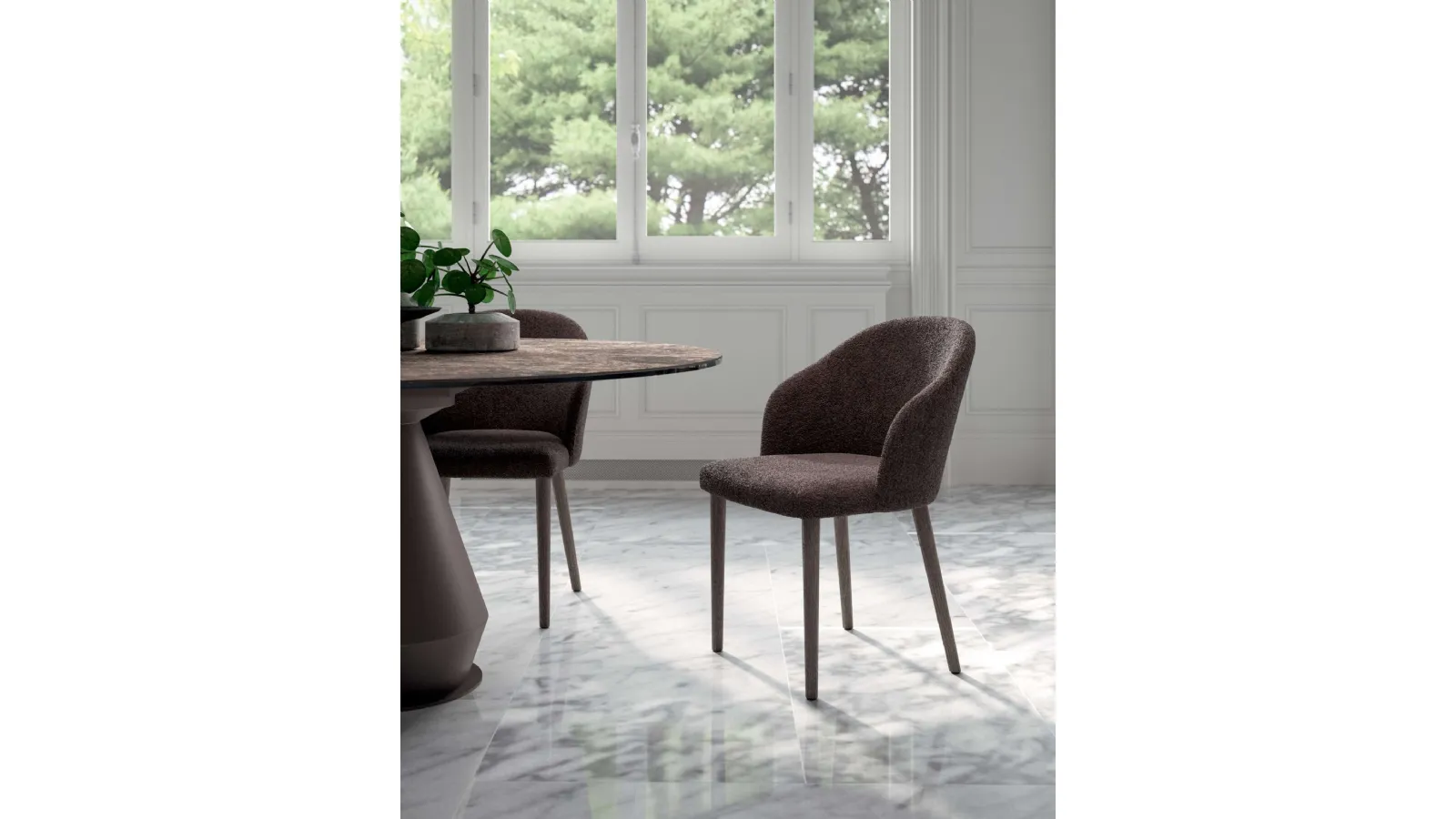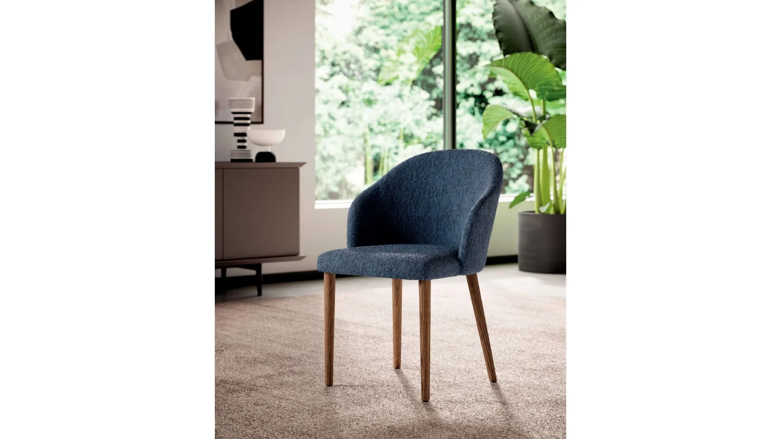 A fabric chair like the one shown here furnishes a living room or kitchen with a high aesthetic content, completing the spaces by fully enhancing them. Among the best brands available in our Home Furnishings shop you will find the most exclusive fixed dining chairs on the market. Modern seats, both in wood and upholstered, are complex pieces of furniture, defined by an almost infinite choice of colours, lines and patterns. In addition to responding to an essential function, these pieces of furniture can enhance even an impersonal space without accessories. In the shop we offer exclusive furniture and accessories, among which you will surely find the solution that's right for you. Contact us and get information on the model of Zico chair in Ozzio fabric shown in the photo.