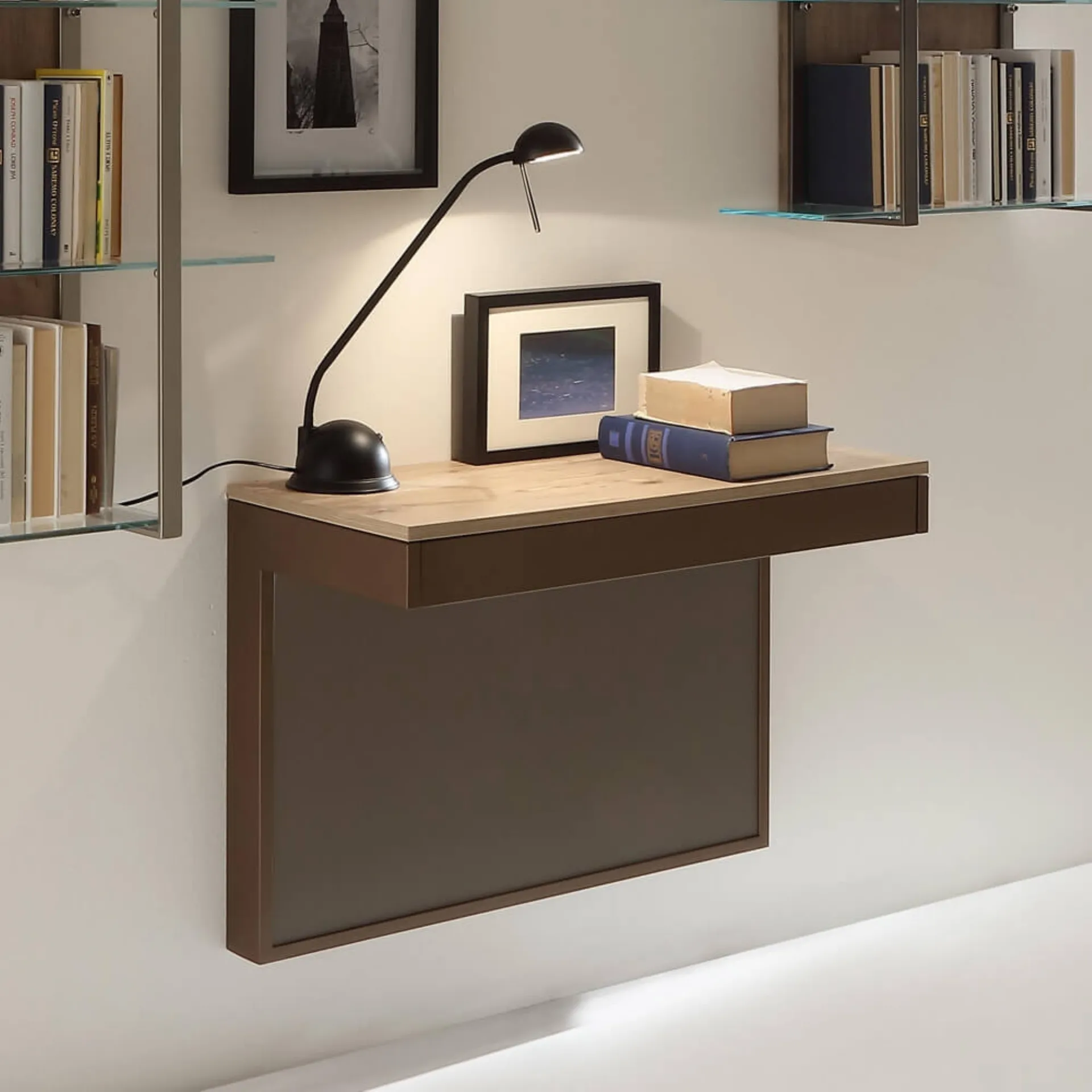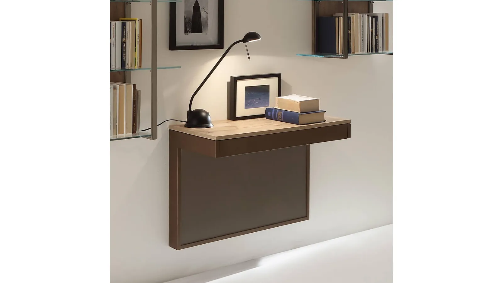 | Materiale: | Metallo (struttura), Melaminico (piano), Cristallo (piano), Plexiglass (pannello verticale) |