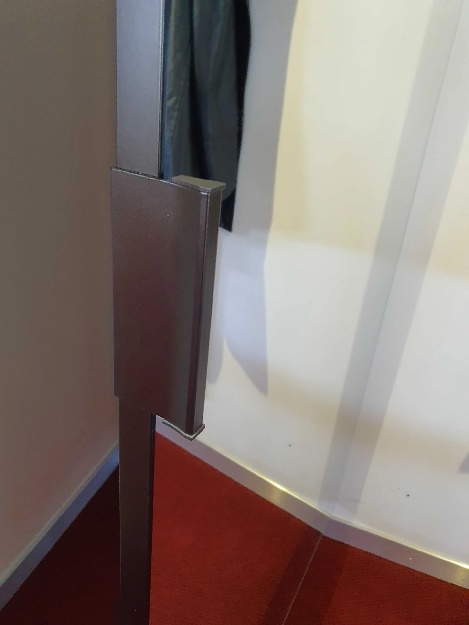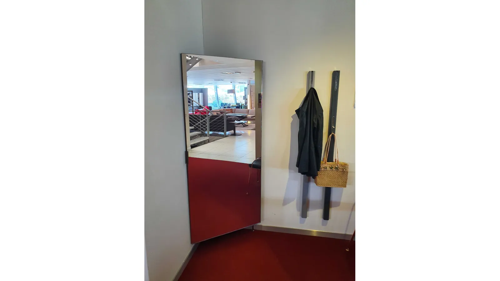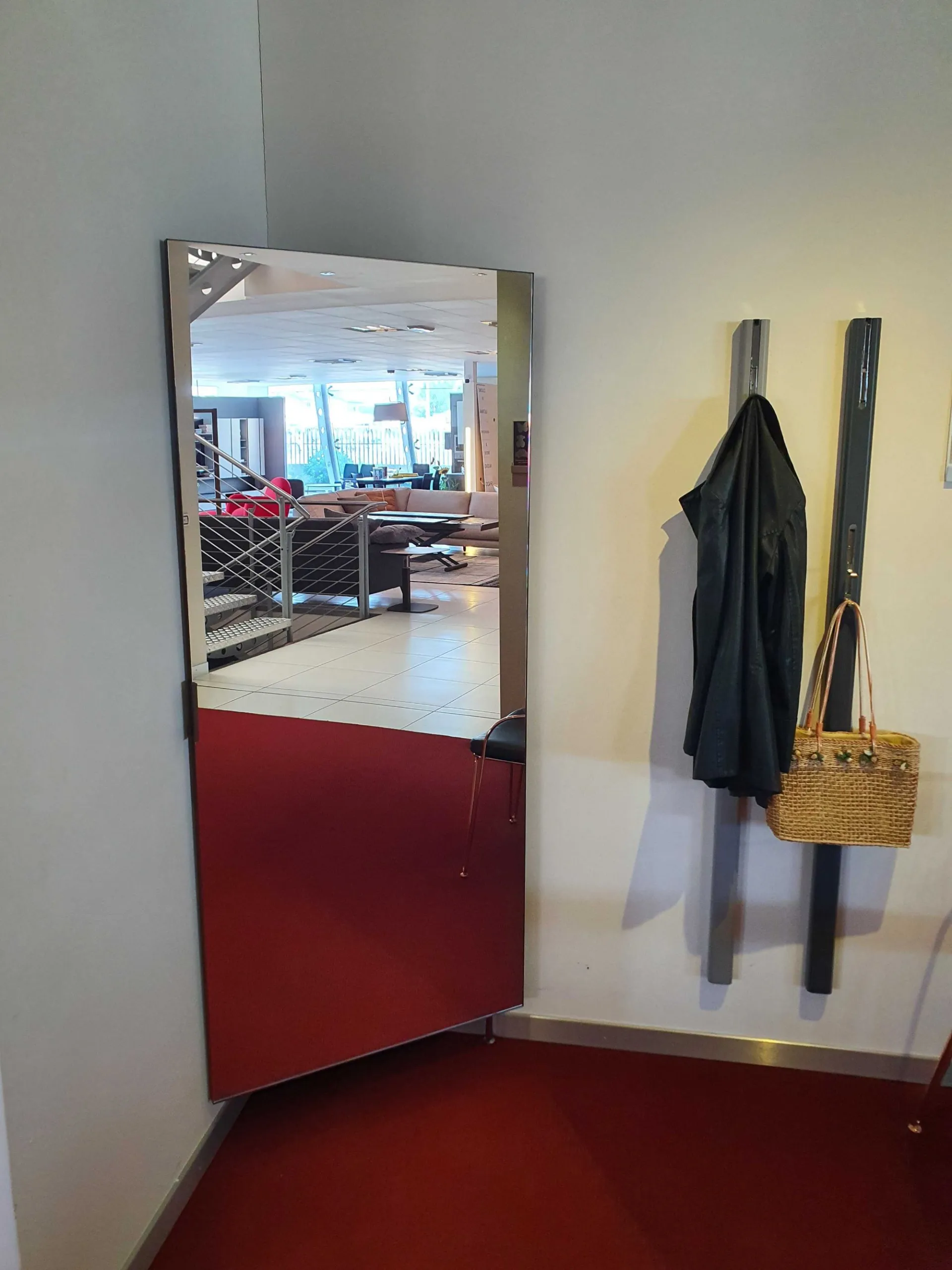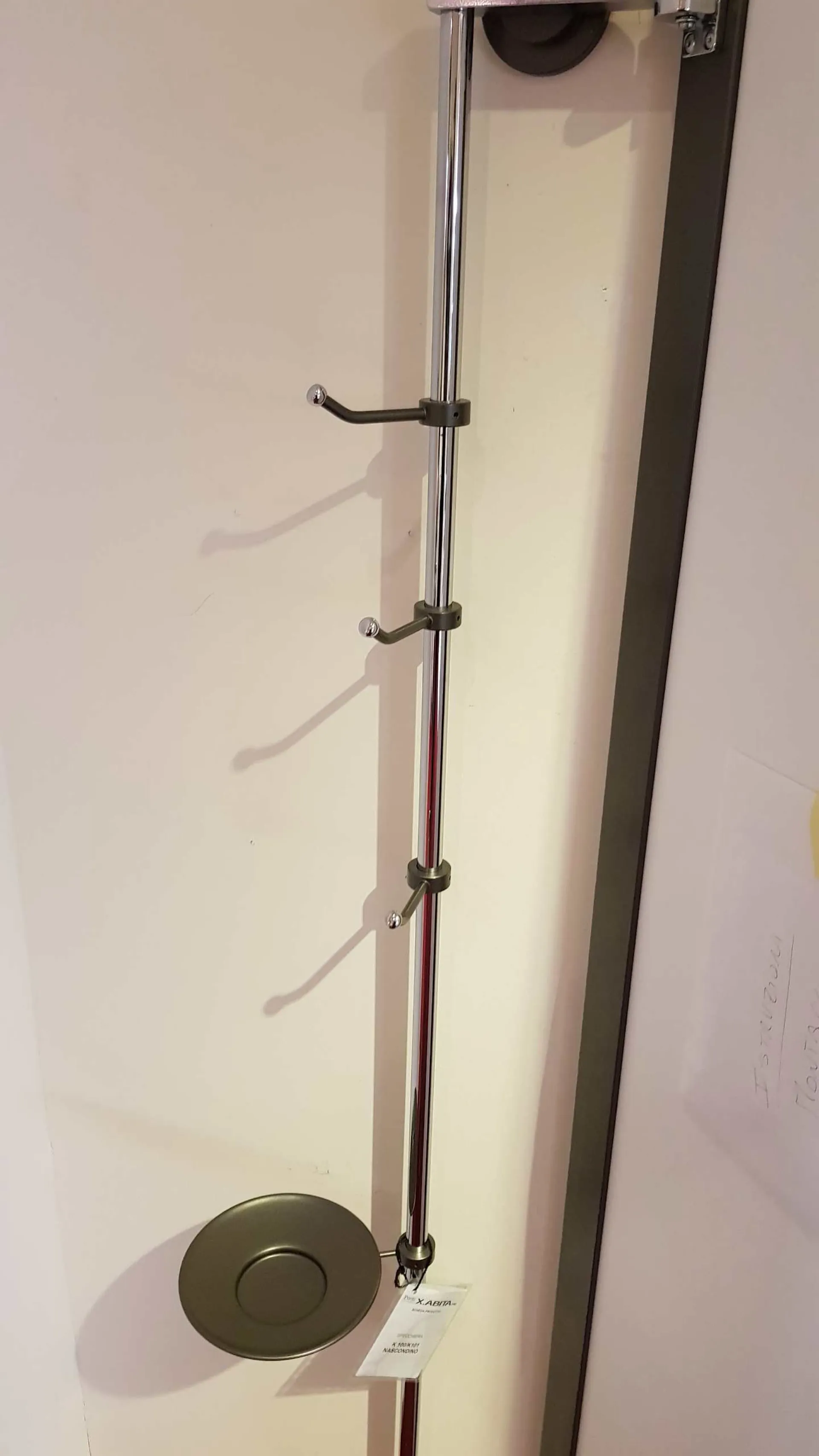 Corner HIDING mirror with opening adaptable to any corner of the house. Practical and elegant solution to give depthà to a particularly narrow or dark area of the house, obtaining a comfortable clothes hanger and discreet and invisible object holder. È characterized by a painted aluminum frame door with a fumè -bronzo mirror panel that by rotating allows access to the rear part, thanks to the particular upright that keeps it anchored to the può wall ; be positioned with different angles to better adapt to the space available.
