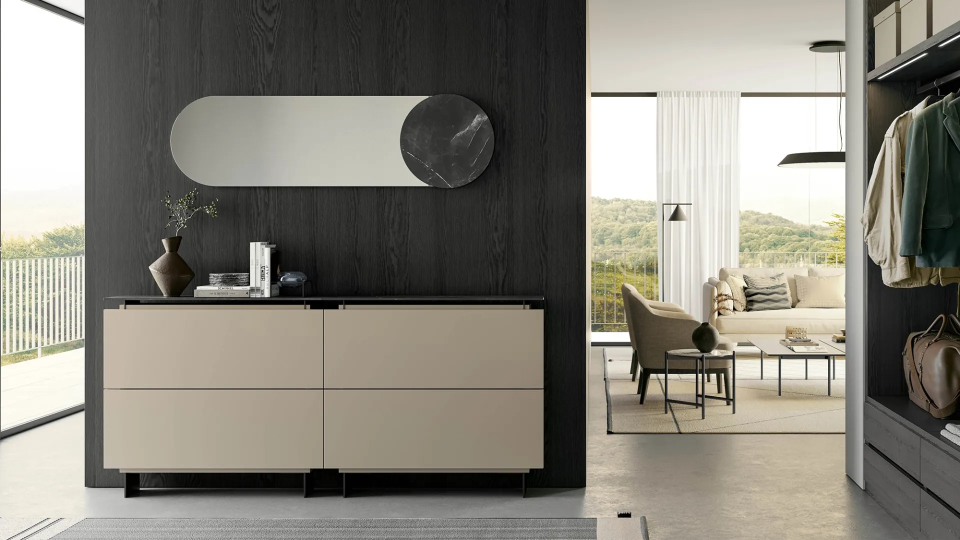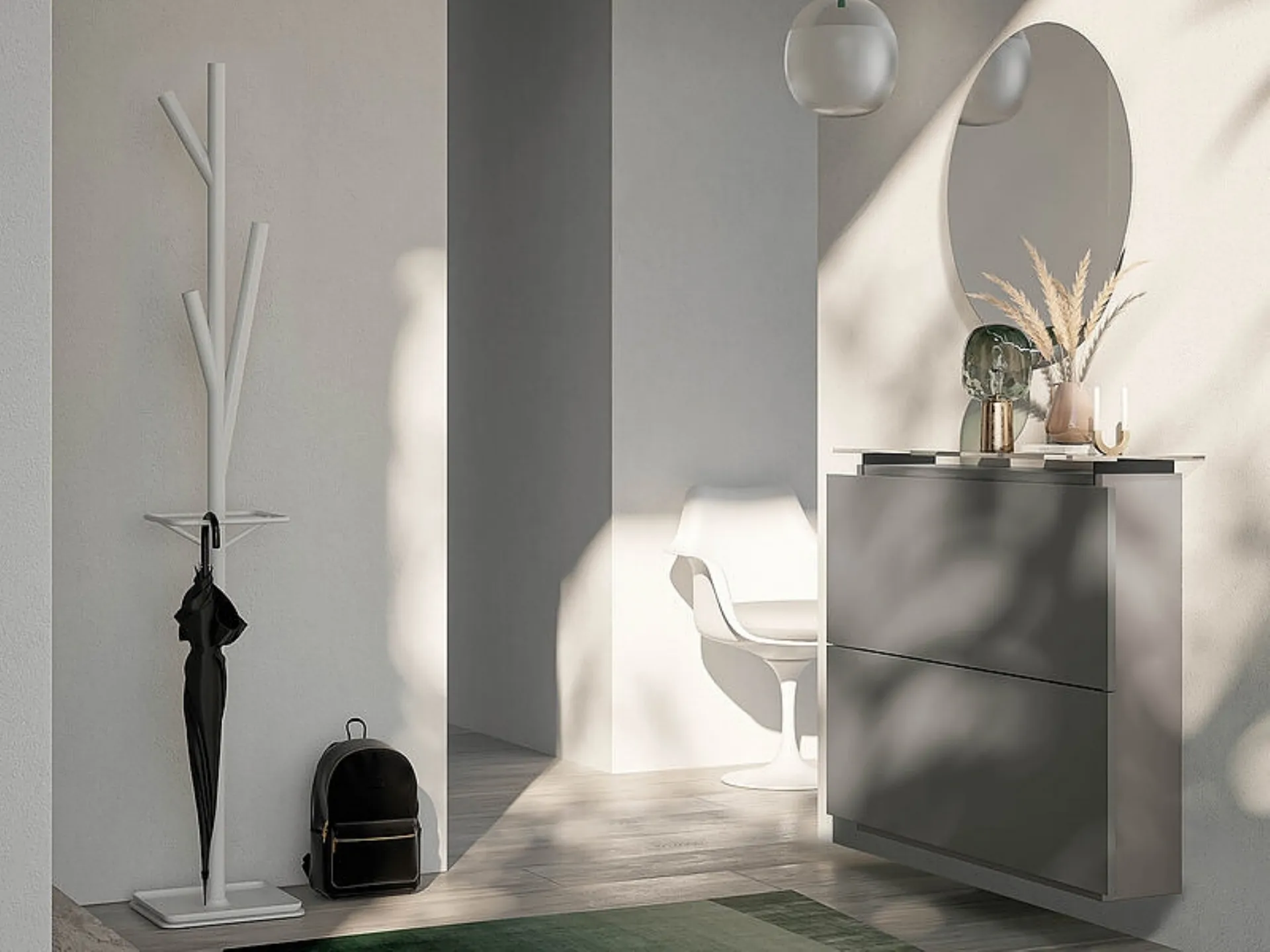 The Hosoi model belongs to the collection of modern entrance furniture by the Birex brand