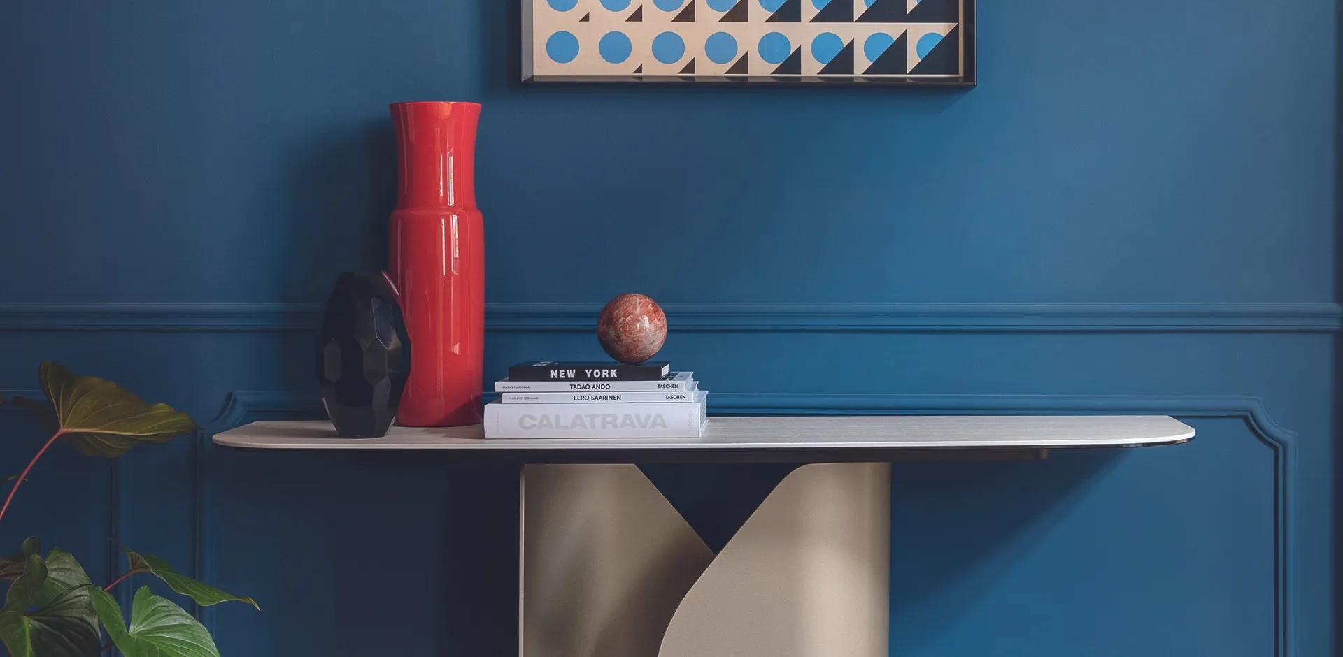 The Twins ceramic model shown in the photo, one of the Calligaris furniture for design entrances, a
