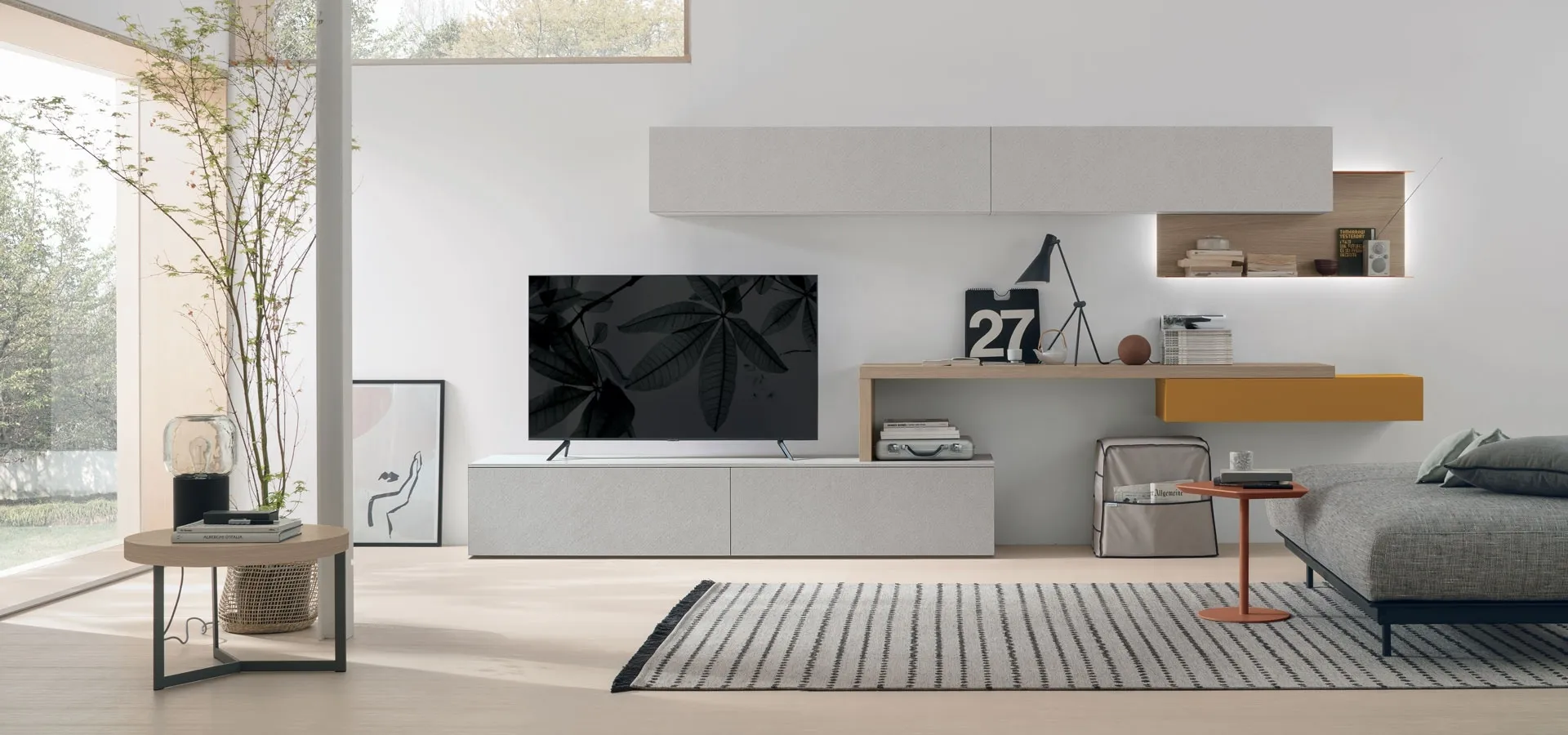 Through a dynamic game of combinations between open components or closed compartments, modern equipped walls furnish the living room making the most of every space. Equipped walls have acquired an important place in the living area of our homes: they are multi-functional and space-saving furniture that can always be custom-made. For information and quotes on the Equipped Wall Atlas UNIT AT120 by Tomasella in the image, contact us! The proposed model is made of melamine, but thanks to a wide variety of textures, colors, and shapes, it can adapt to every style. This equipped wall is one of the solutions offered by the brand and will allow you to design the living area following the most specific housing issues.