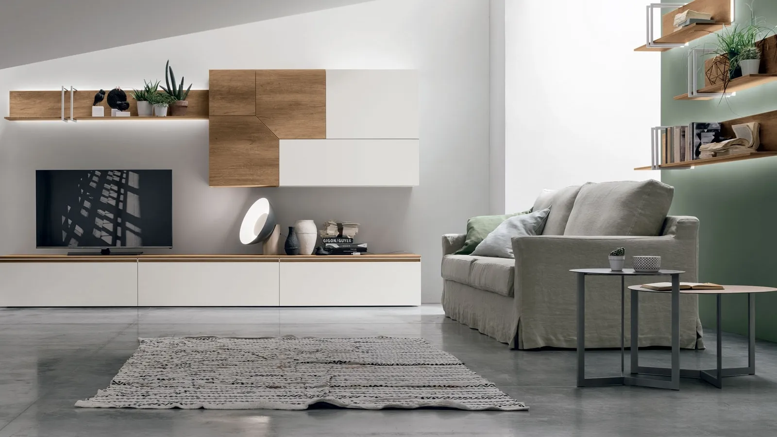 The Atlante UNIT AT129 wall unit by Tomasella in the image is highly modular and offers several customization possibilities: discover the available wall unit here and contact us for more information and quotes. Mounted on the wall or placed in the center of the room to better organize an open space, the most original furniture compositions on the market decorate the living room enhancing the available space. Enrich your interiors with Tomasella's modern wall units: in our store you will find furniture and design accessories made of durable materials from top manufacturers. To meet the diverse housing needs of each individual, the brand offers its customers a rich catalog of highly functional modern wall units characterized by a touch of style.