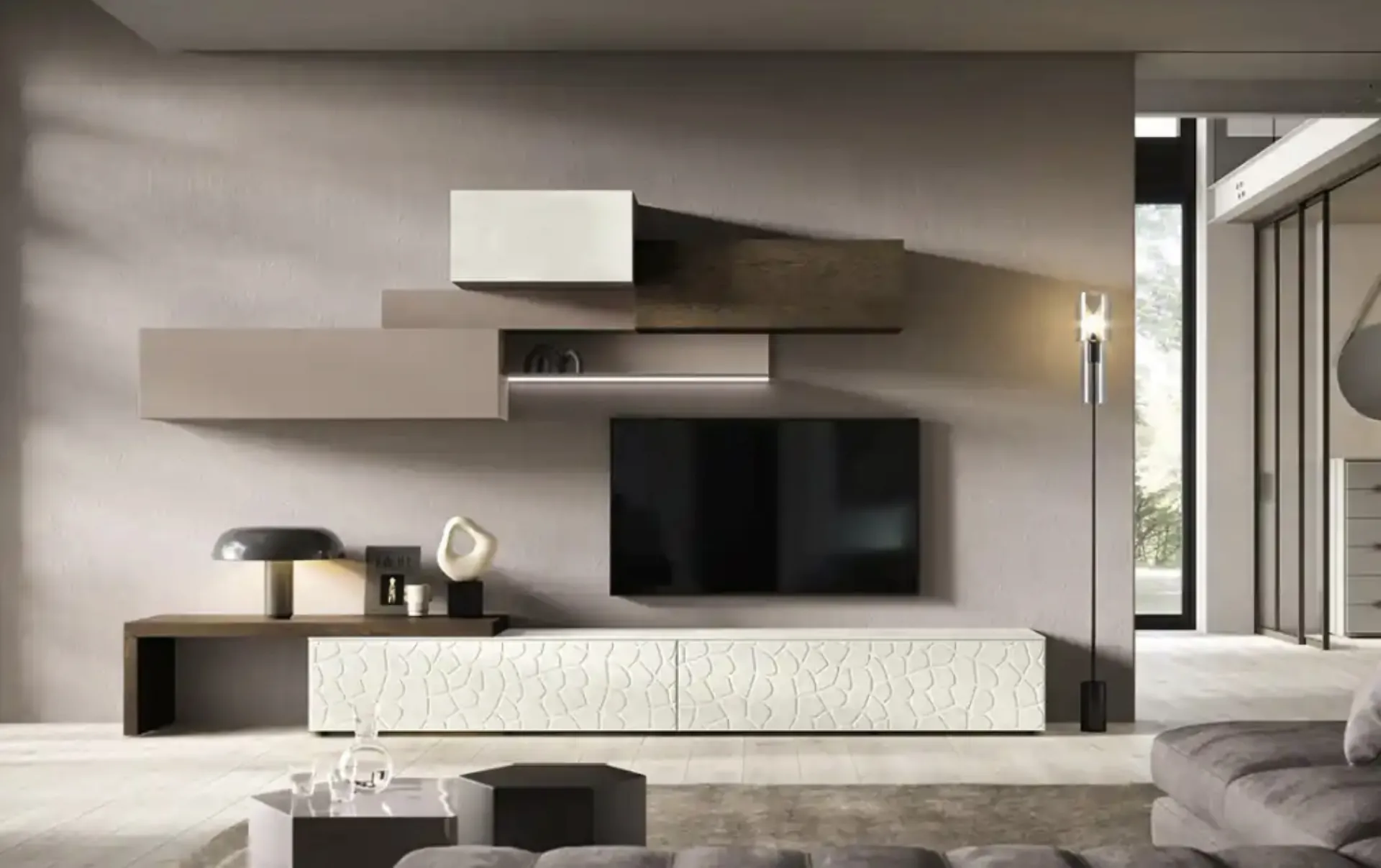Since the living room needs to be a functional and aesthetically pleasing space, some beautiful and practical furnishings such as Wall Units are essential. Let yourself be tempted by a rich catalogue of furniture for the living area and you can find the wall unit that suits your needs. Moretti Compact Giorno Notte offers innovative models of living room furniture, different in style, shape, texture, and elements: discover in our showroom the Home Furnishing from the best manufacturers. The Kosmos KC103 Wall Unit by Moretti Compact Day Night in the photo is one of the most beautiful furniture solutions on the market: its high modularity and different design opportunities make it beautiful and functional. Textured living room furniture with modern lines, like the model in the photo, are truly versatile and capable of optimizing every corner of the living area.