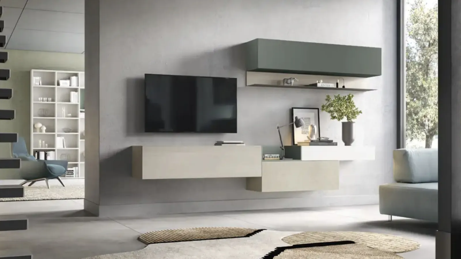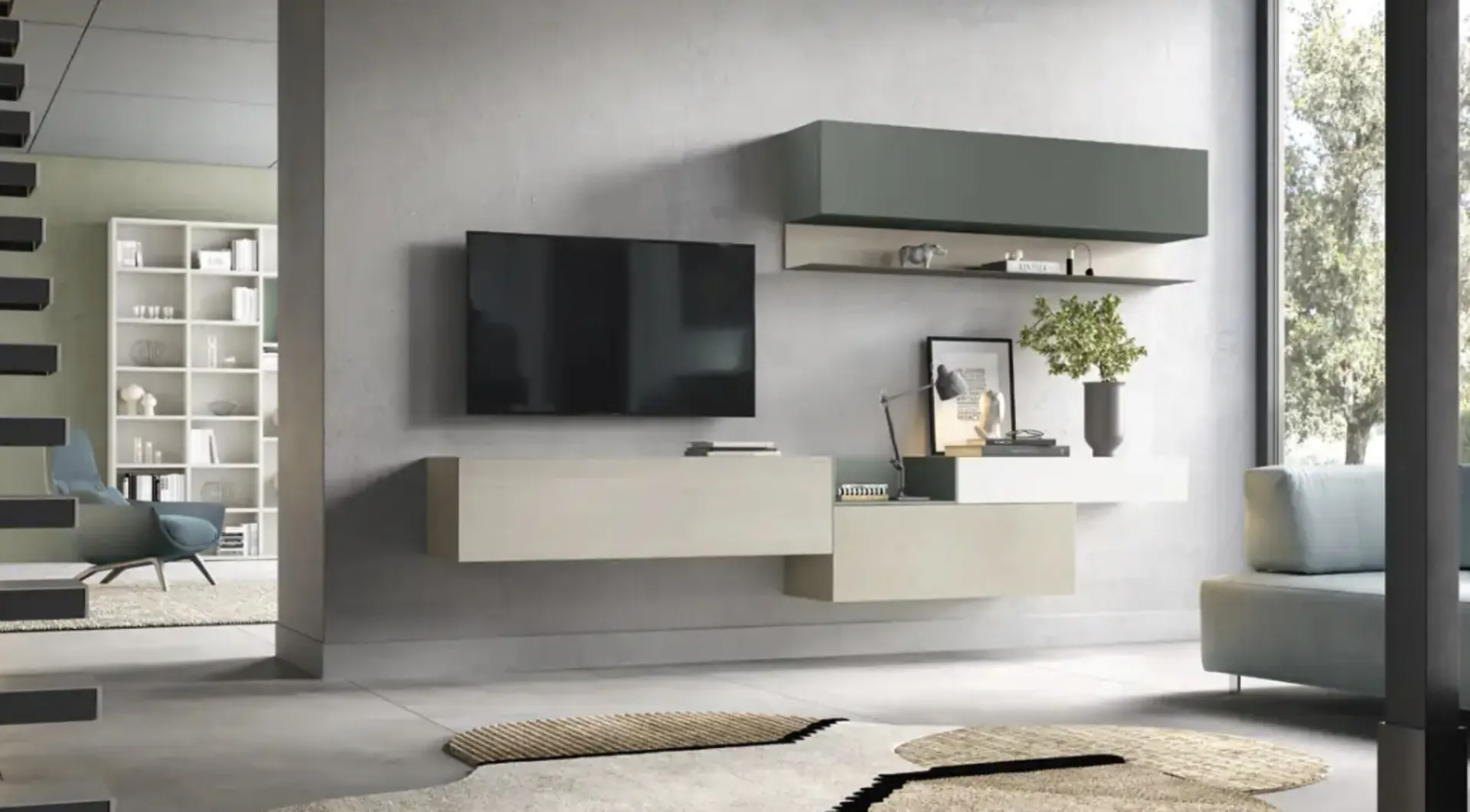The Kosmos KF102 suspended wall unit by Moretti Compact Giorno Notte in the photograph is one of the most exclusive furnishing solutions on the market: customizable modularity and various design opportunities make it beautiful and functional. Moretti Compact Giorno Notte produces innovative living room furniture models, different in style and shapes, finishes and elements: discover in our showroom the Home Furnishing of the best manufacturers. Melamine living room furniture with modern lines, like the model in the photograph, is truly versatile and capable of furnishing the living area by optimizing every corner. Let yourself be fascinated by a wide range of furniture for the living area and you will find the wall unit that suits you. Since the living room must be a well-organized and aesthetically valuable space, some beautiful and practical furniture such as Wall Units are essential.
