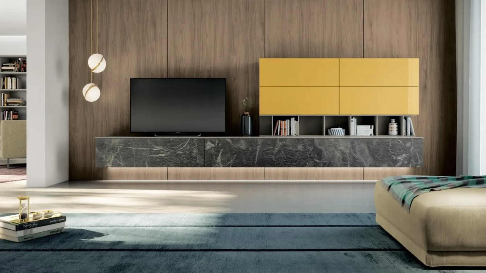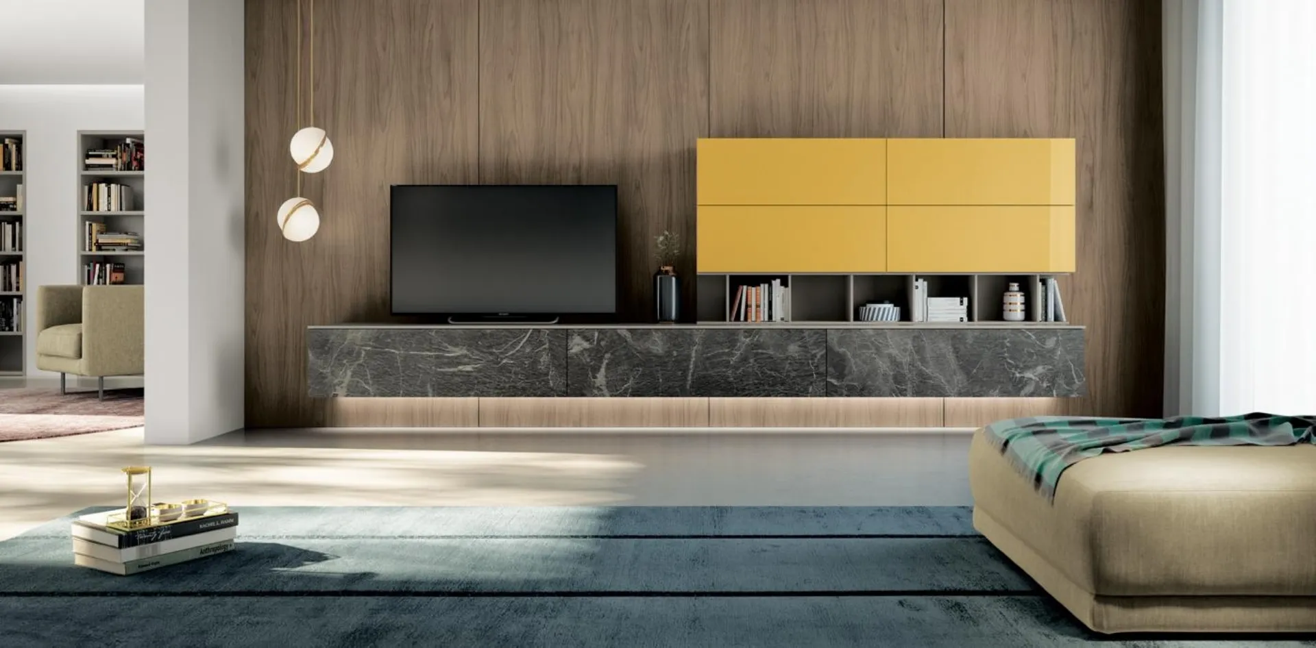 Living 807 Wall Unit by Spagnol Mobili: discover one of the most beautiful matt lacquered solutions to furnish the living room with us