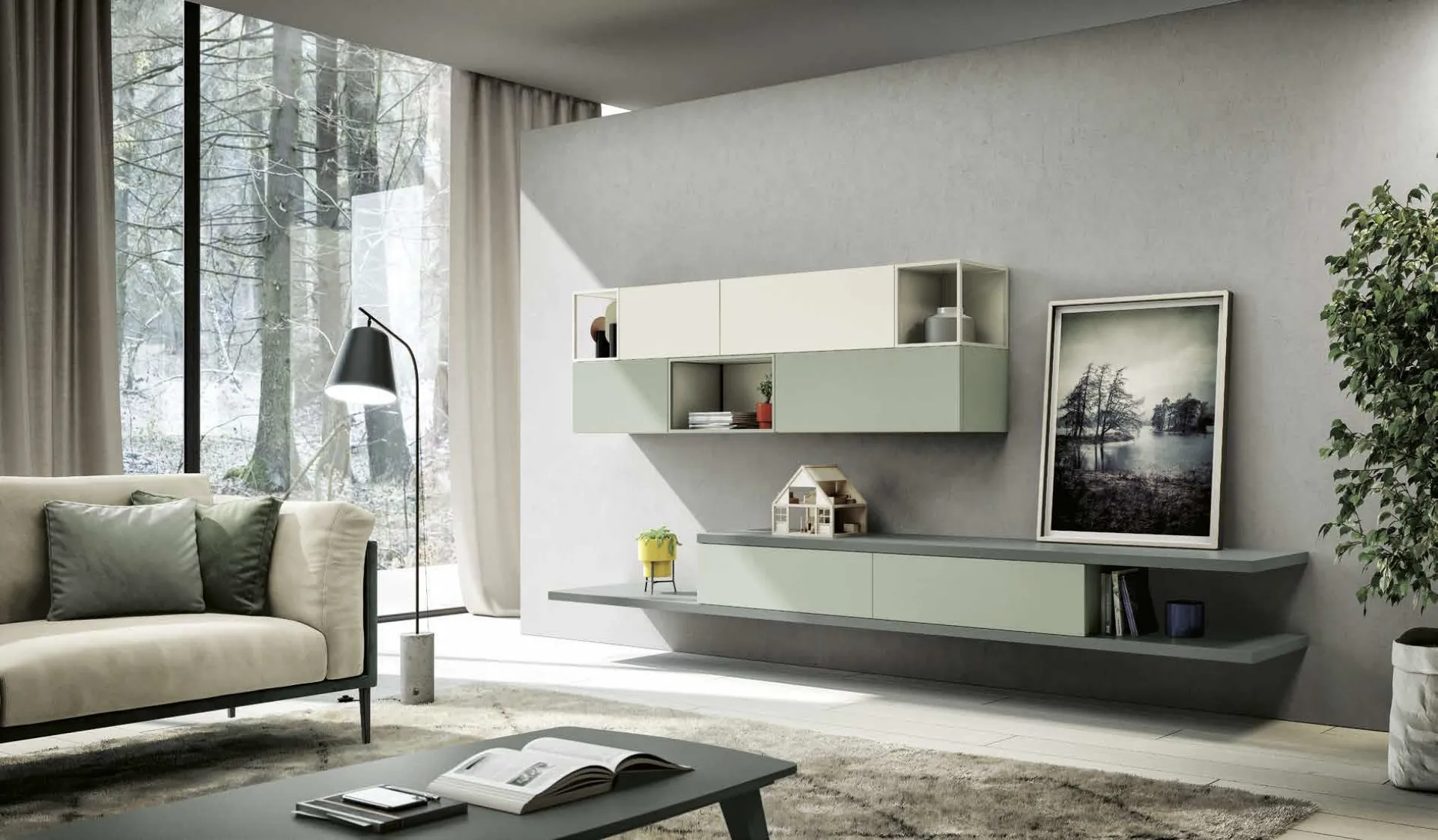 Wall unit suspended Living 857 by Spagnol Mobili