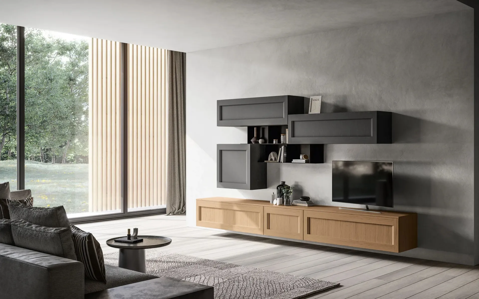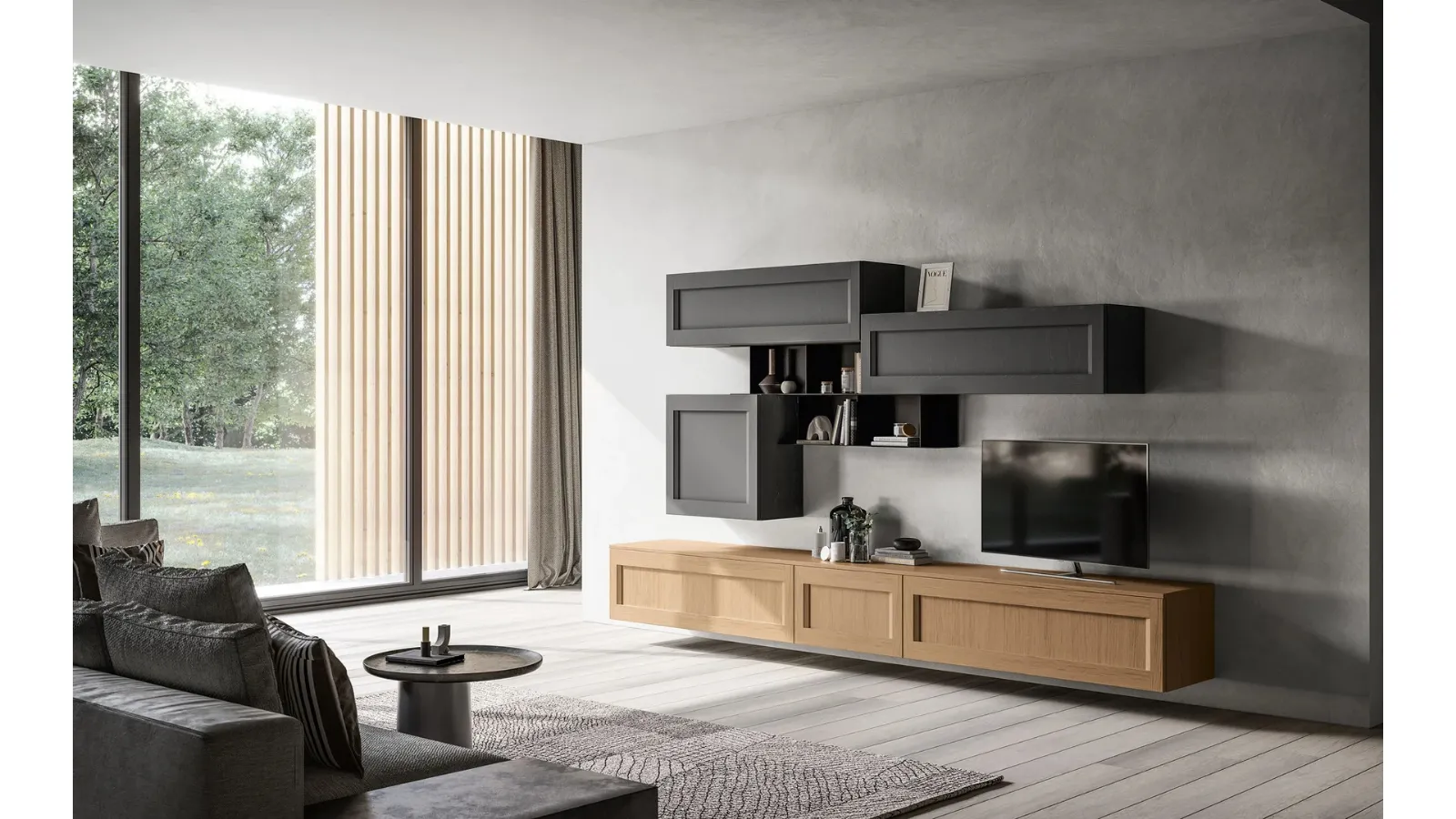La collezione Living Frida di Arredo3 propone soluzioni d'arredo per il soggiorno contemporaneo, enfatizzando un design essenziale con anta a telaio e apertura integrata. Questo modello si distingue per la sua notevole versatilità, consentendo di configurare il salotto con una varietà di elementi funzionali: basi, pensili, vani a giorno e mensole. La Parete Attrezzata Living Frida 02, in particolare, è costruita in legno e laccato, offrendo un'elevata componibilità e molteplici opzioni di personalizzazione. È la scelta ideale per creare ambienti operativi e pratici, mantenendo un'estetica raffinata e un'impronta classica. L'elevata modularità e le opzioni di customizzazione avanzate sono caratteristiche intrinseche dei prodotti di brand leader come Arredo3, garantendo soluzioni su misura per ogni progetto d'interior design.