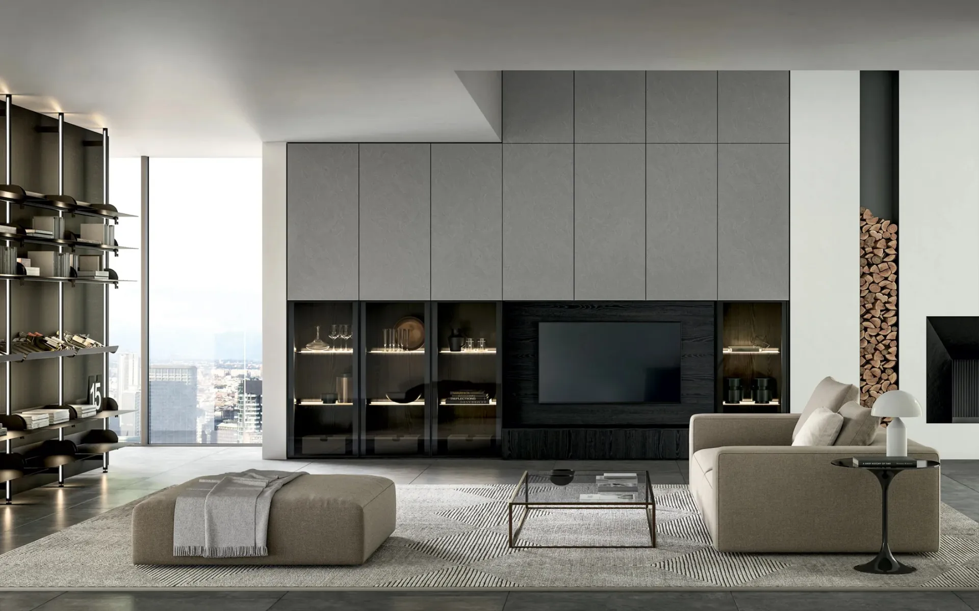 The Living Wall Unit Kali 01 by Arredo3 in the image has high modularity and different customization possibilities: discover the wall unit available here and contact us for more information and quotes. Enhance your interiors with the modern Wall Units by Arredo3: in our showroom you will find furniture and design accessories, in durable materials from the best manufacturers. To meet the varied housing needs of each individual, the brand offers its customers a rich catalog of extremely functional and refined modern Wall Units. Wall mounted or freestanding to optimize an open space, the most exclusive furnishing compositions on the market decorate the living room by enhancing the available space.