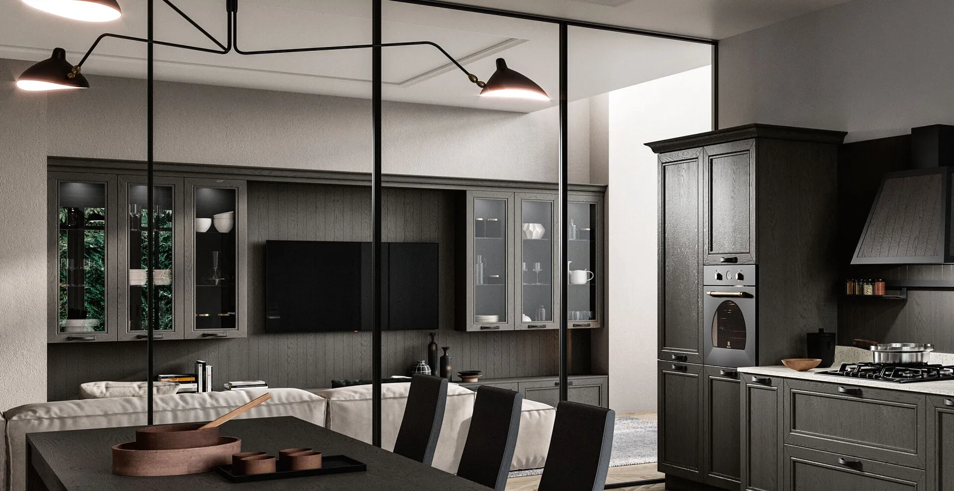 Through a dynamic interplay of combinations between accessories for open spaces or closed compartments, classic Wall Units furnish the living area by making the most of every space. Wall Units have acquired a fundamental place in the living area of our homes: they are multifunctional and space-saving furnishings always customizable to fit your needs. This wall unit is one of the solutions offered by the brand and will allow you to design the living area according to your most personal living needs.