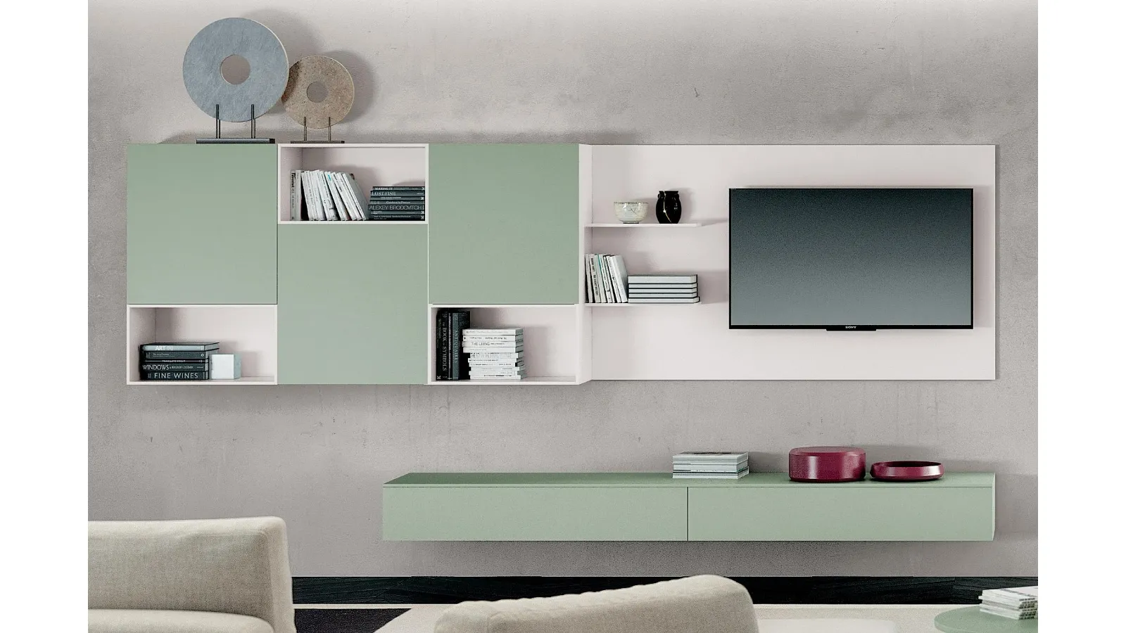 Loft Wall Unit by Spagnol Mobili: discover one of the most exclusive matt lacquered solutions to furnish the living room with us