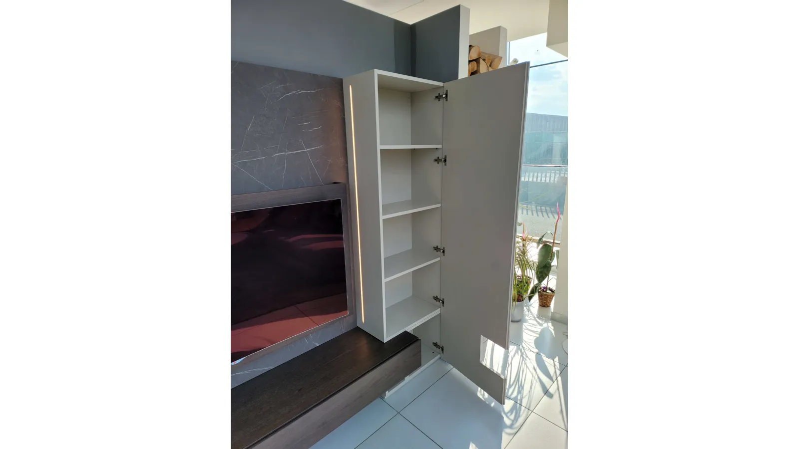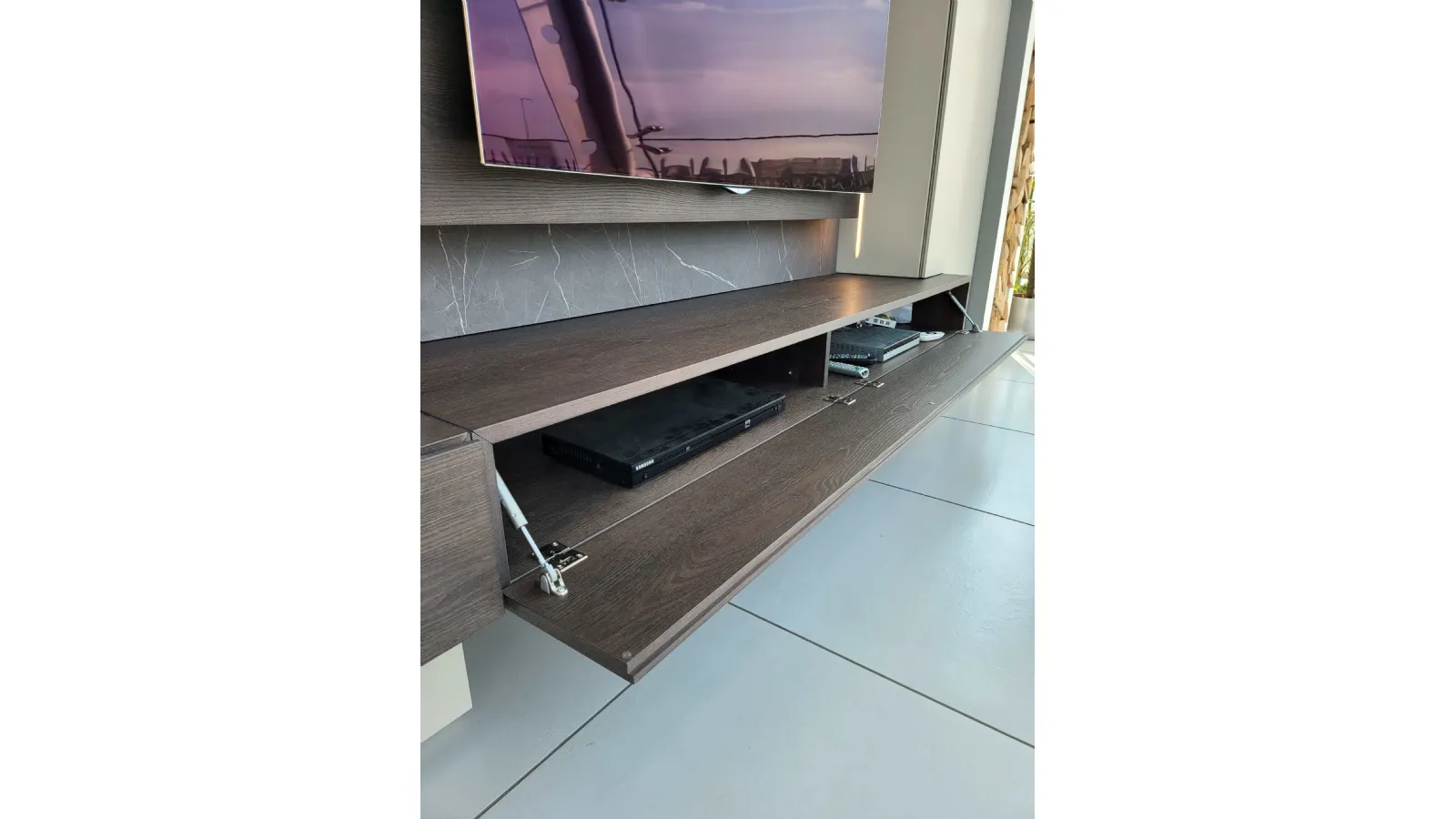 You can then direct the TV at will thanks to the innovative and patented X2 TV panel with metal arm. Its measure è cm L.140xH.84. You will not see any TV cables.