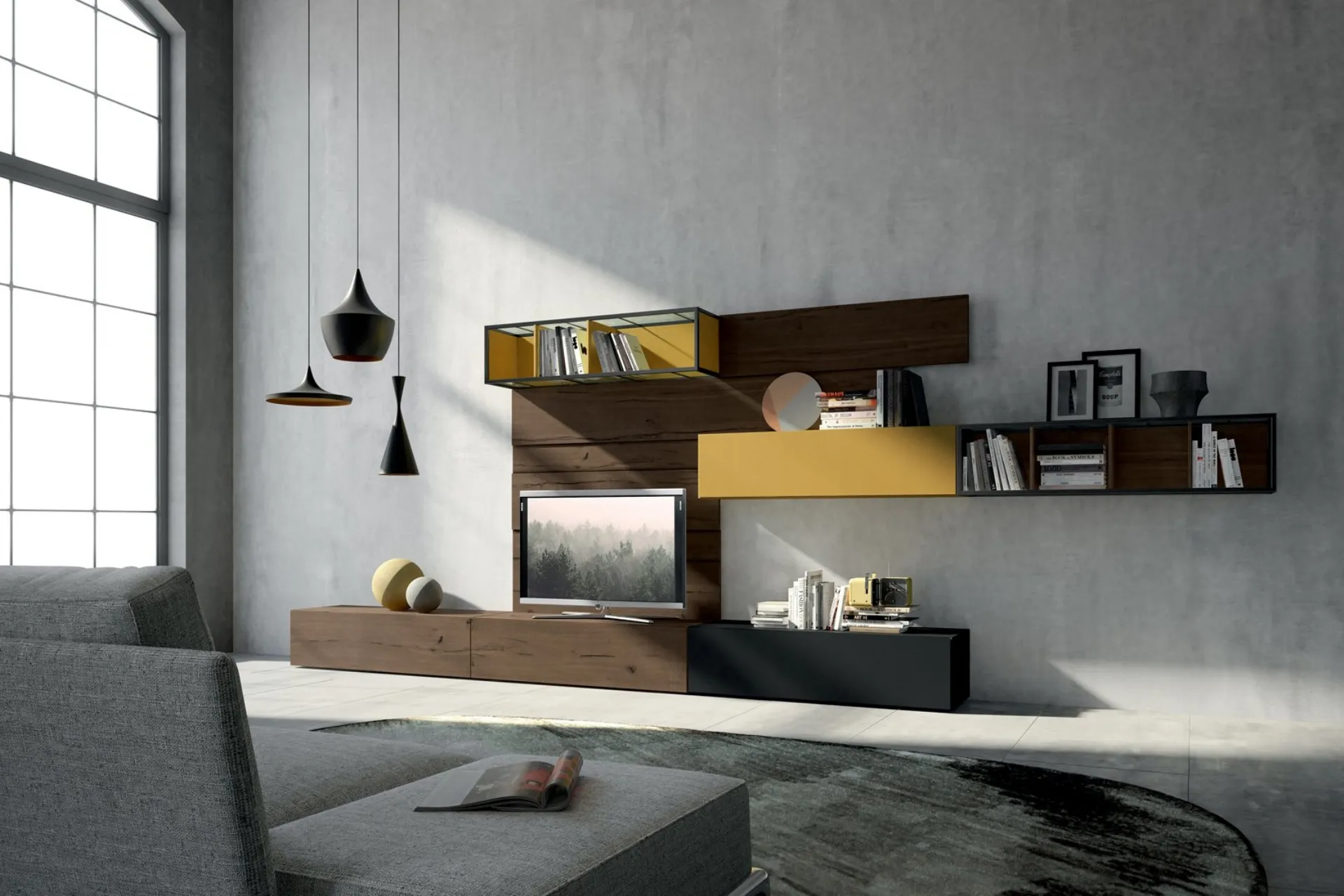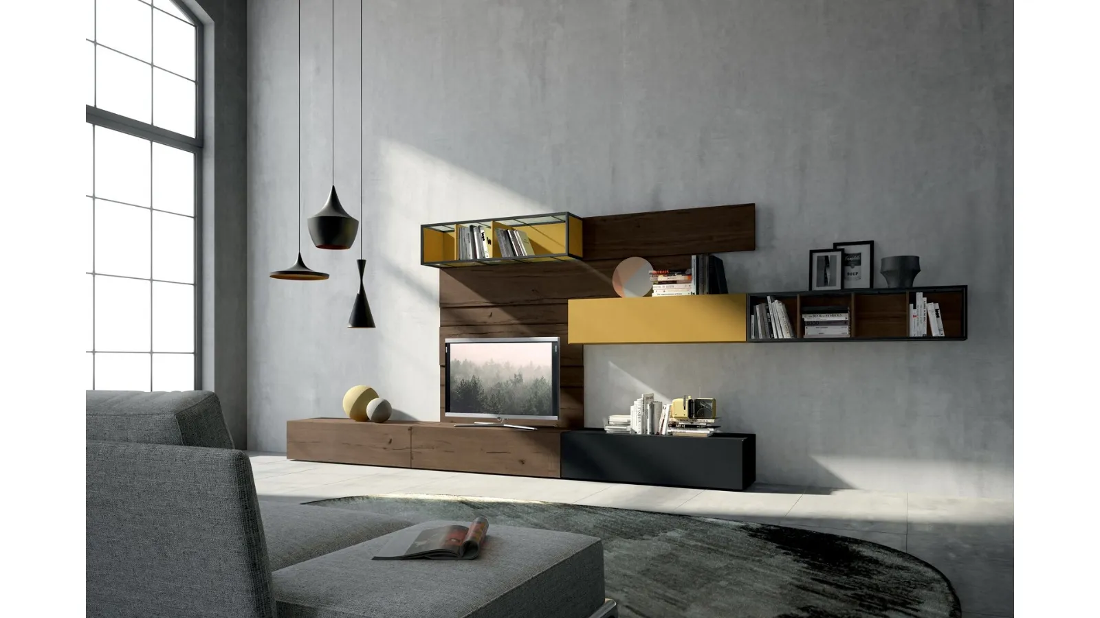 Il sistema Rebel Living 05 di Fimar Mobili incarna un design d'avanguardia, caratterizzato da linee pulite e una palette cromatica ispirata alla natura, per un ambiente che fonde comfort e modernità. Questa proposta d'arredo è concepita per chi desidera un living raffinato e altamente funzionale, dove estetica e praticità si incontrano. L'attenzione ai dettagli è un segno distintivo della qualità Fimar. Il Rebel Living 05 si inserisce nell'innovativo sistema Rebel, che sperimenta l'uso di materiali sostenibili come legno riciclato, vetro, ferro e compact a base di fibra di eucalipto. Questo approccio offre vaste opportunità di personalizzazione, sia nelle finiture che nelle laccature, permettendo di creare soluzioni uniche e su misura. Per un'analisi dettagliata delle configurazioni disponibili, il nostro team è pronto a fornire tutte le informazioni necessarie.
