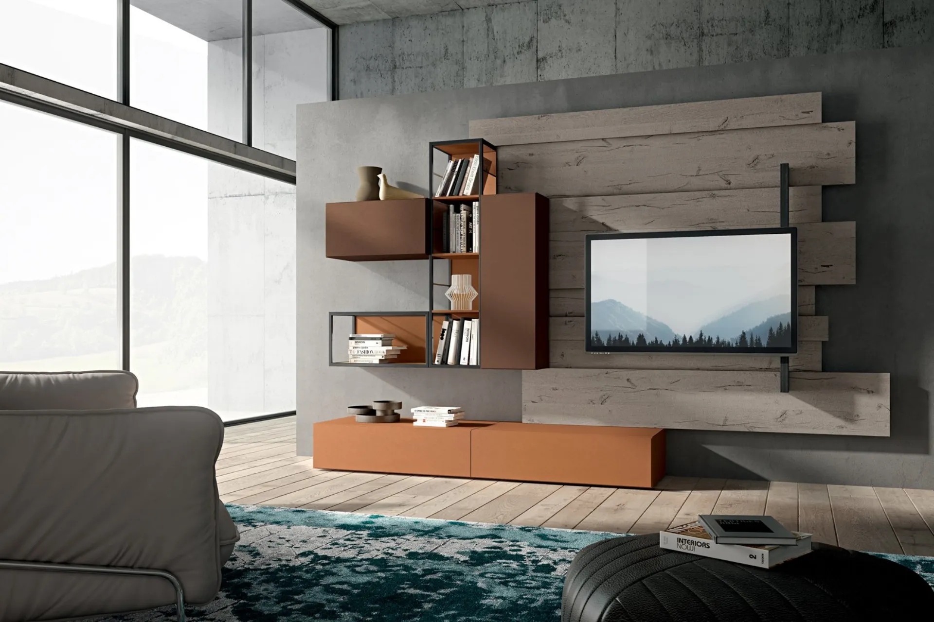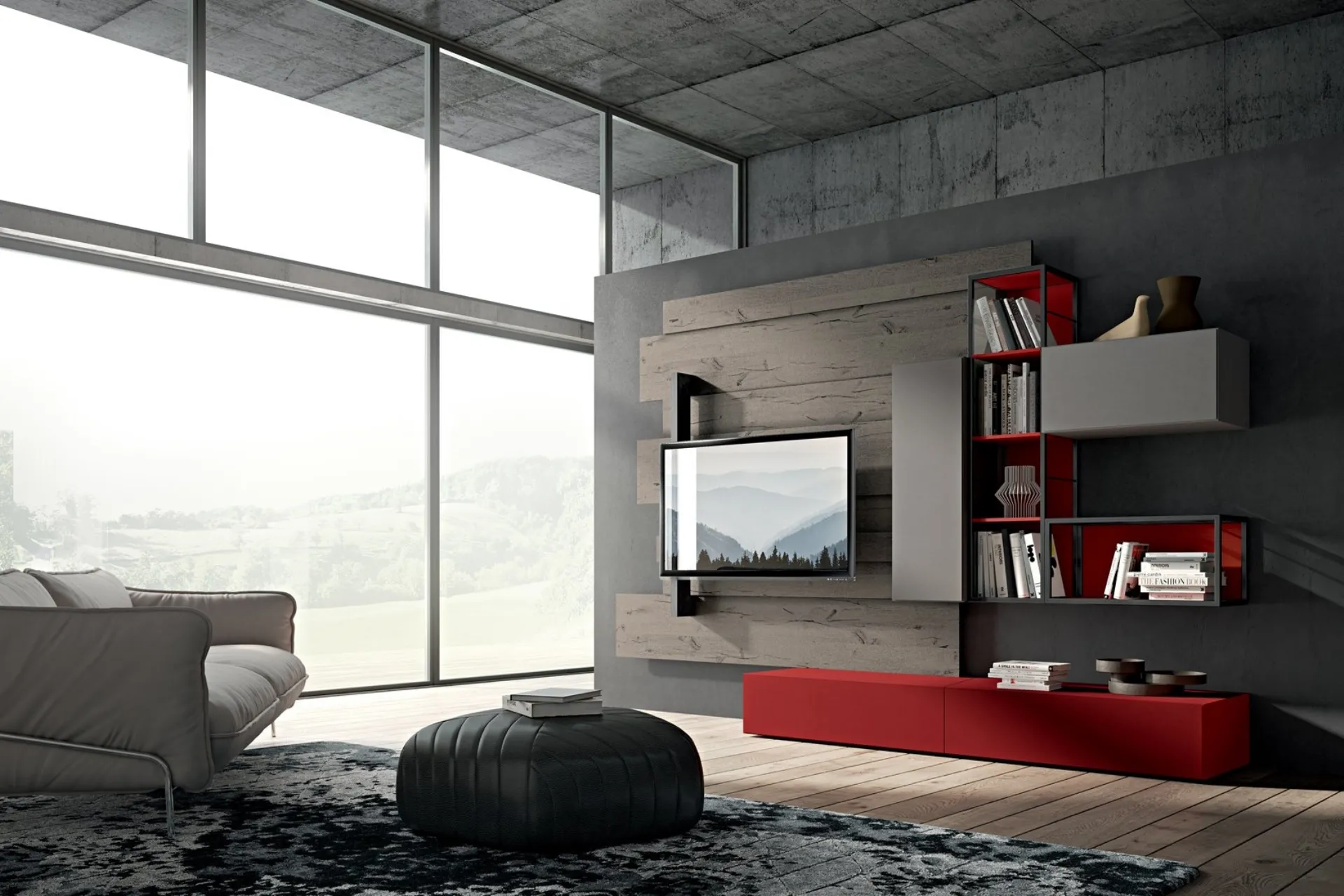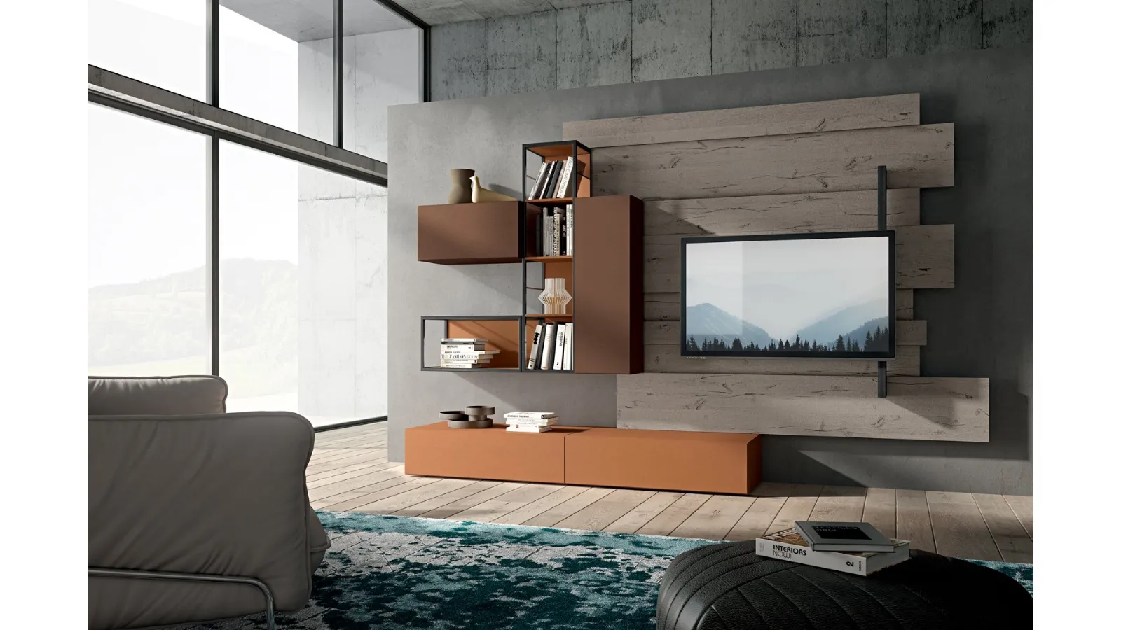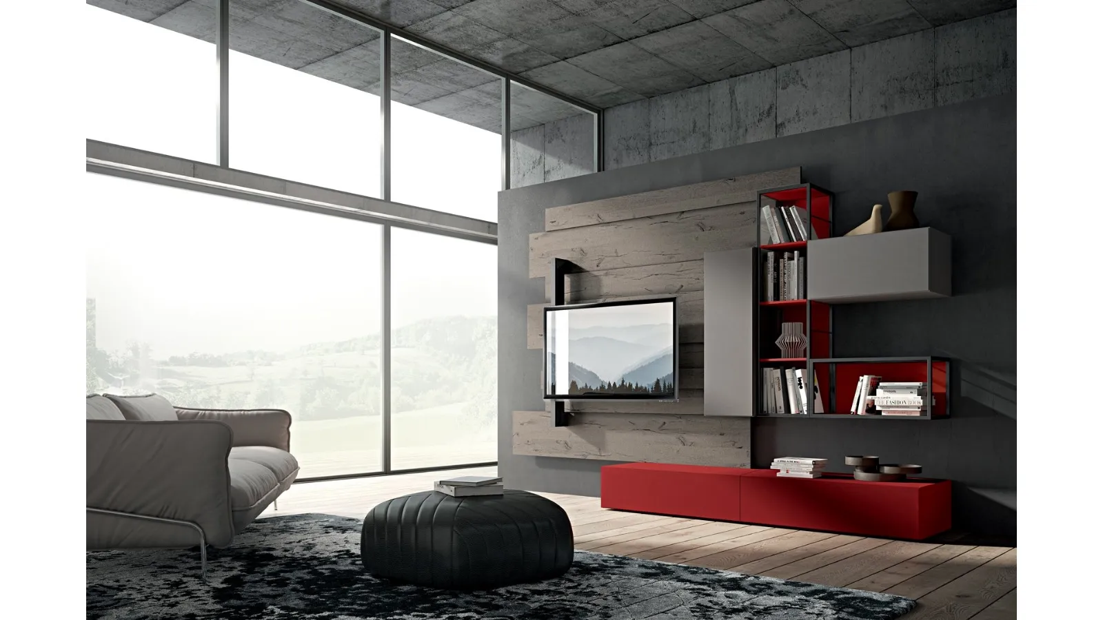 Rebel R06 Wall Unit by Fimar: discover one of the most exclusive matt lacquered solutions to furnish the living room with us