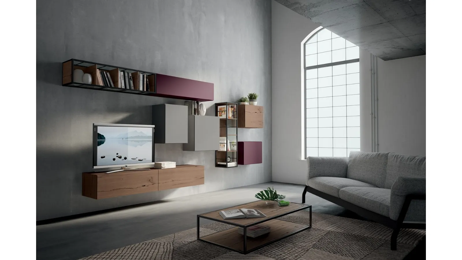 Rebel R08 Wall Unit by Fimar: discover one of the most beautiful wooden solutions to furnish the living room with us