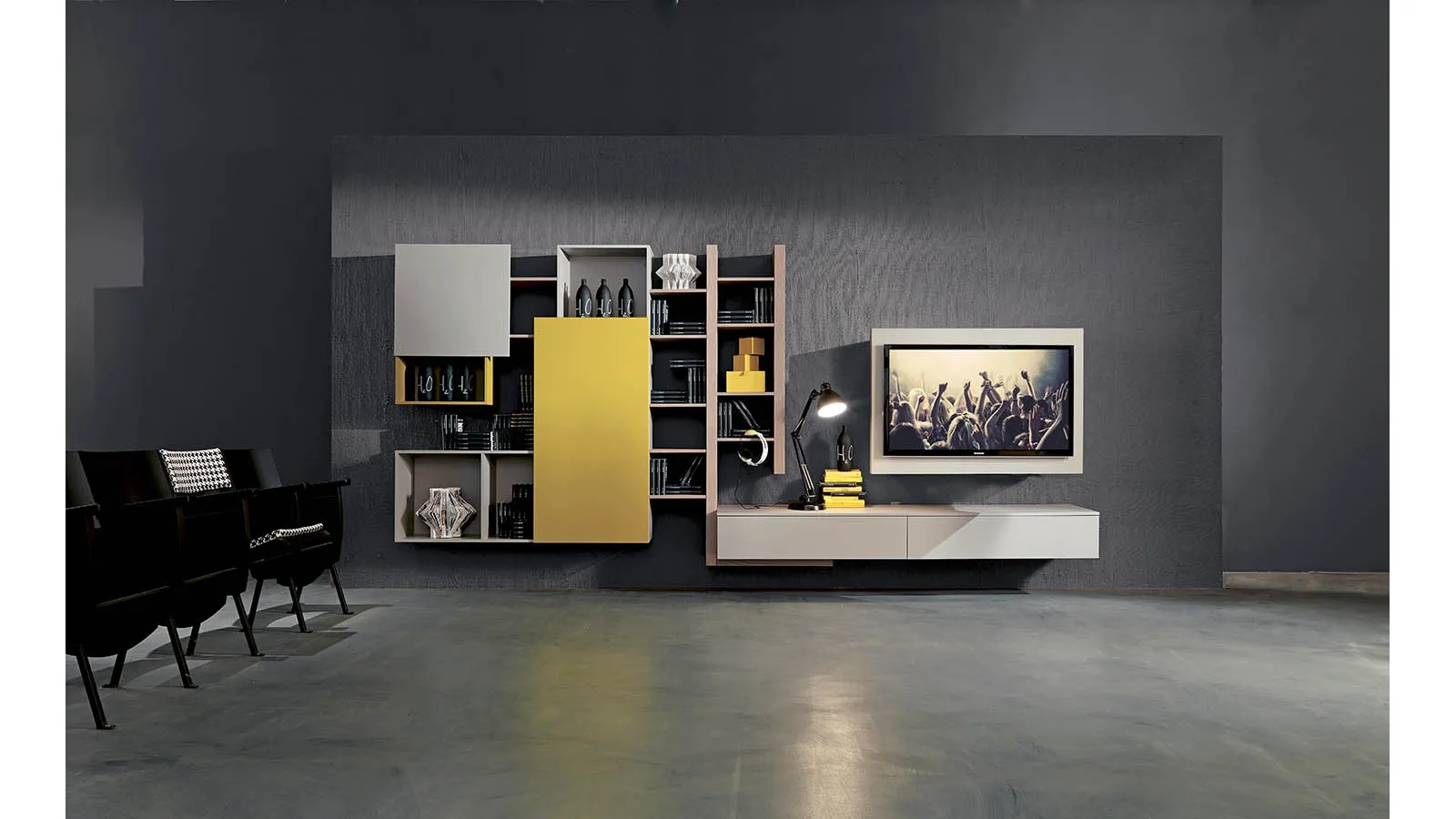 Fimar Home Furnishing: the Side 2 Equipped Walls in matt lacquer to furnish the living room are waiting for you!