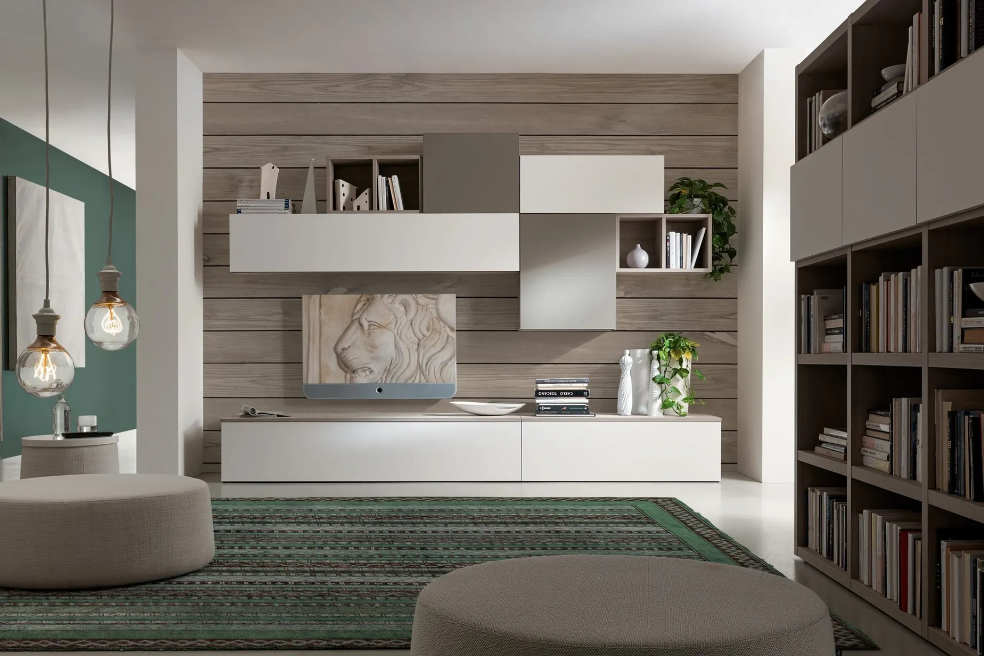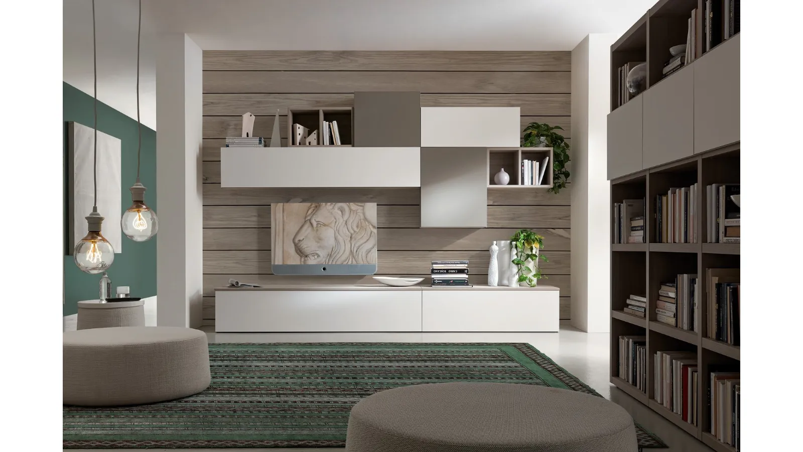 Let yourself be inspired by a rich catalog of furnishings for the living area and you will find the wall unit that's right for you. The laminate living room furniture with modern lines like the model in the photo are truly eclectic and capable of furnishing the living room making the most of every corner. Since the living room must be a well-organized and beautiful to look at space, some beautiful and practical furnishings are needed, such as the Equipped Walls. S75 offers new models of living room furniture, different in terms of style and shape, finishes and components: discover the best-branded Home Furniture in our showroom. The S75 Soft Futura 04 Storage Wall in the photo is one of the most original furnishing solutions on the market: the high modularity and the different design possibilities make it practical and sophisticated.