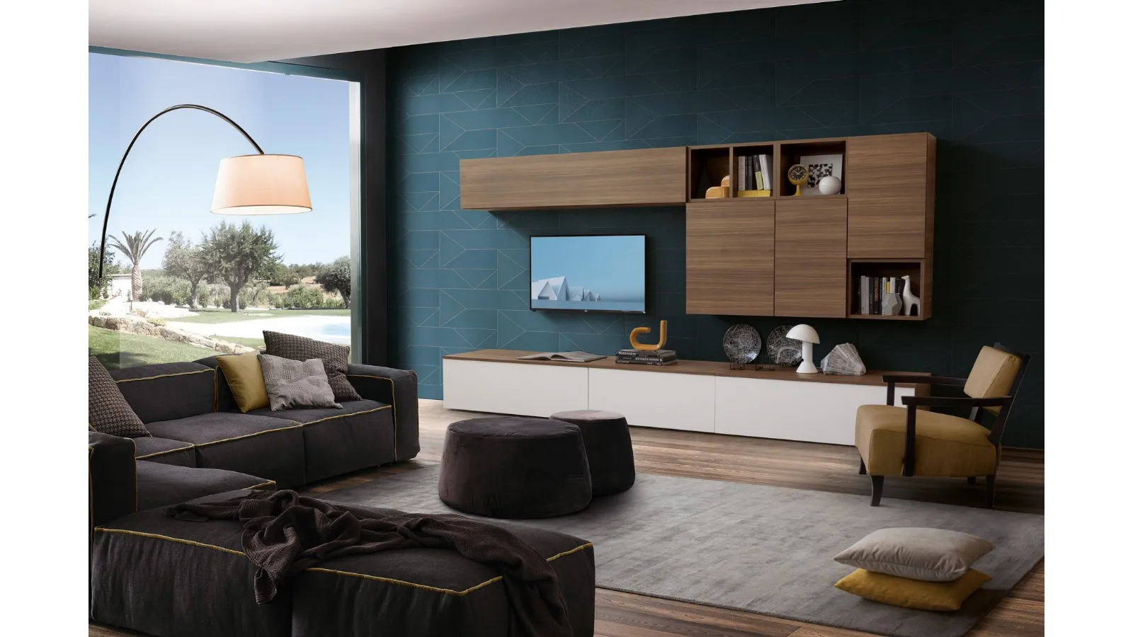 La parete attrezzata Spot Chloè 01 include soluzioni per l'integrazione di un modulo TV?Certamente, il design della parete attrezzata Spot Chloè 01 è pensato per integrare moduli TV, spesso con soluzioni per passacavi e ripiani dedicati. Durante la fase di progettazione, potrai definire la configurazione migliore per le tue esigenze multimediali.