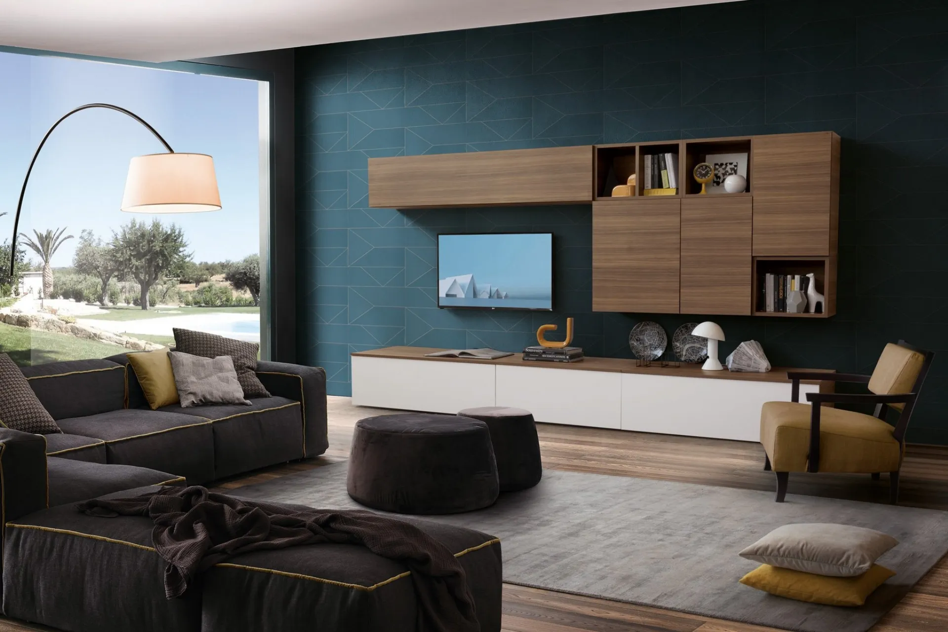 The melamine living room furniture with modern lines like the model in the photograph are truly versatile and capable of furnishing the living area by optimizing every corner. The Spot Chloè 01 Storage Wall by S75 in the photograph is one of the most exclusive furnishing solutions on the market: the high modularity and the different design possibilities make it beautiful and of great quality. Let yourself be inspired by a rich catalog of furniture for the living area and you will find the equipped wall that's right for you. Since the living room must be a well-organized and beautiful to look at space, some beautiful and practical furnishings are indispensable, such as the Equipped Walls. S75 offers original models of living room furniture, different in terms of style and shape, finishes and components: discover the best-branded Home Furniture in our showroom.